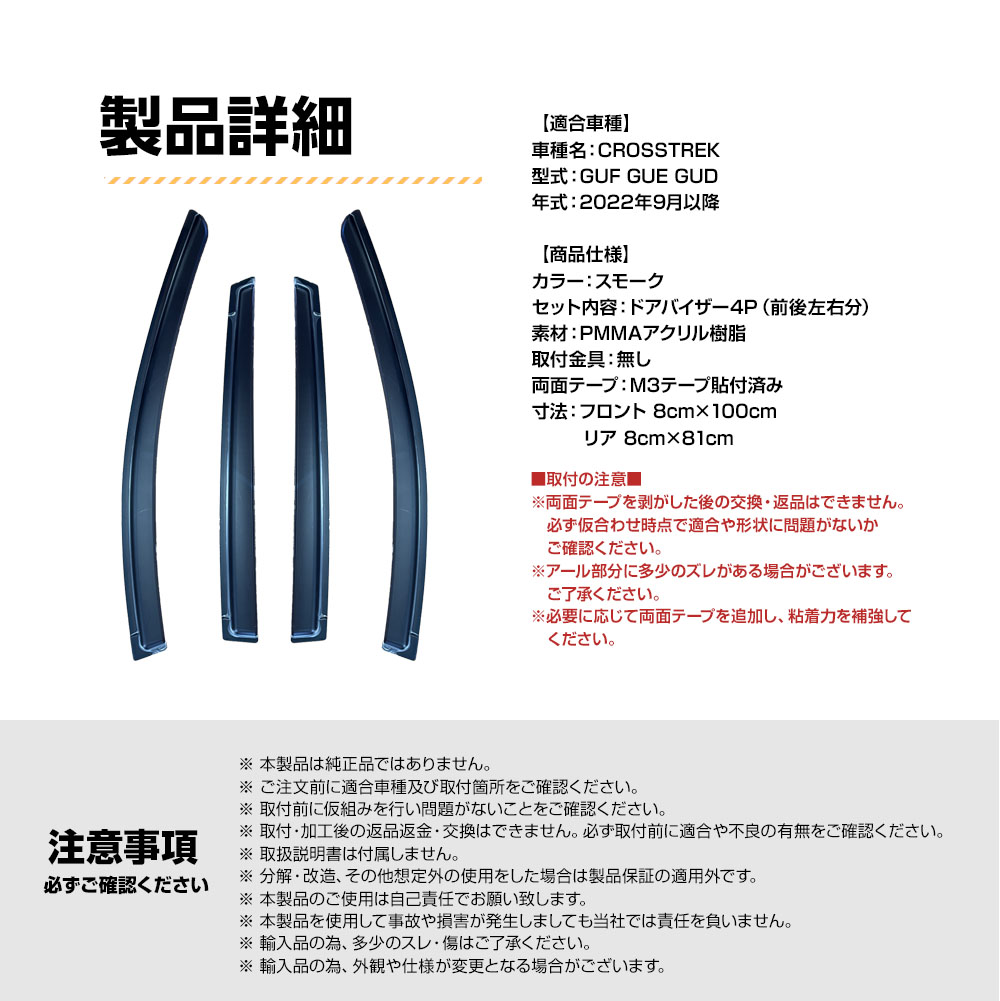 クロストレック GUF GUE GUD ドアバイザー ドア サイド ウインドウ バイザー サイドバイザー スモーク 運転席 助手席 雨避け 日避け