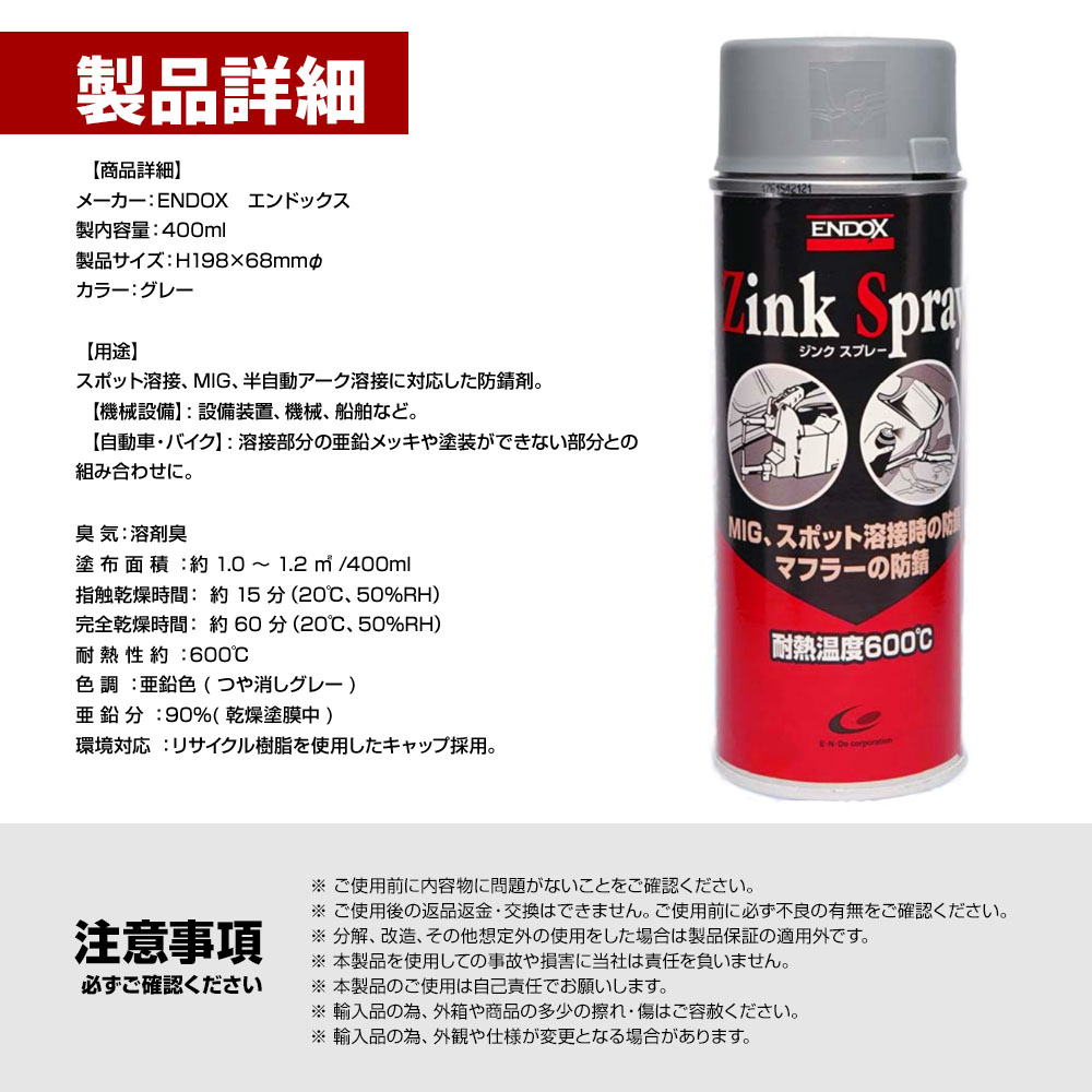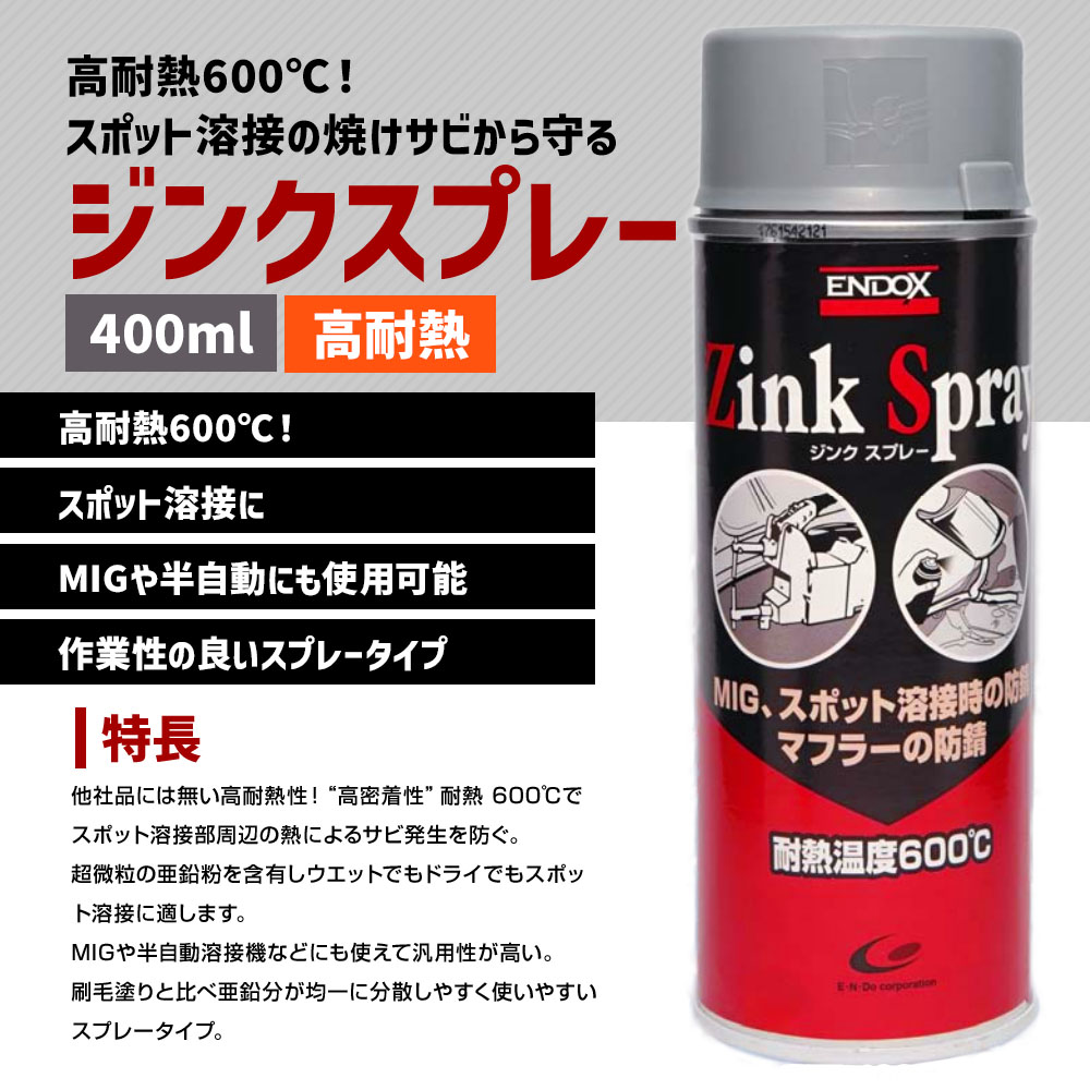 ENDOX エンドックス 通電性 防錆剤スプレー 防錆剤ジンクスプレー 400ml 1本 亜鉛メッキ対応 錆止め スプレー サビドメ 80016