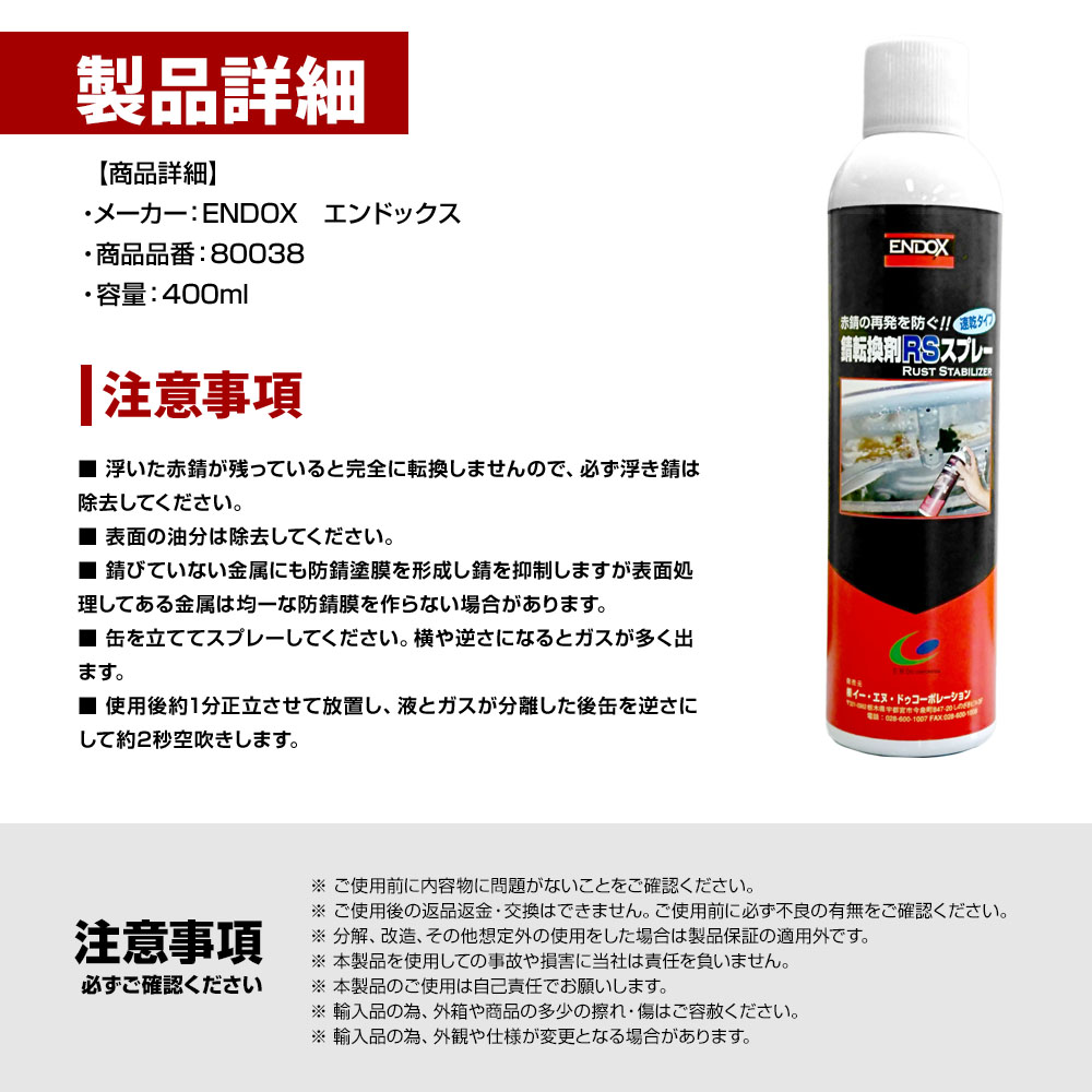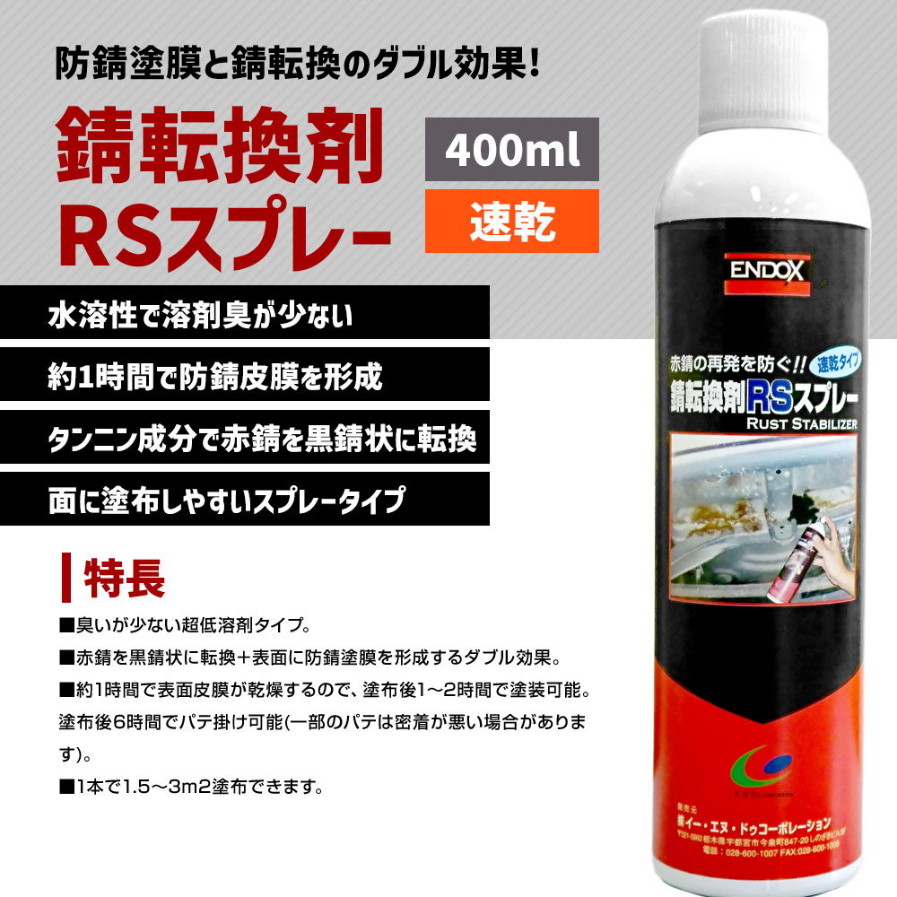 • ENDOX エンドックス 防錆剤 錆転換剤RSスプレー 400ml 1本 赤錆を黒錆に変えて錆の進行を止める 80038