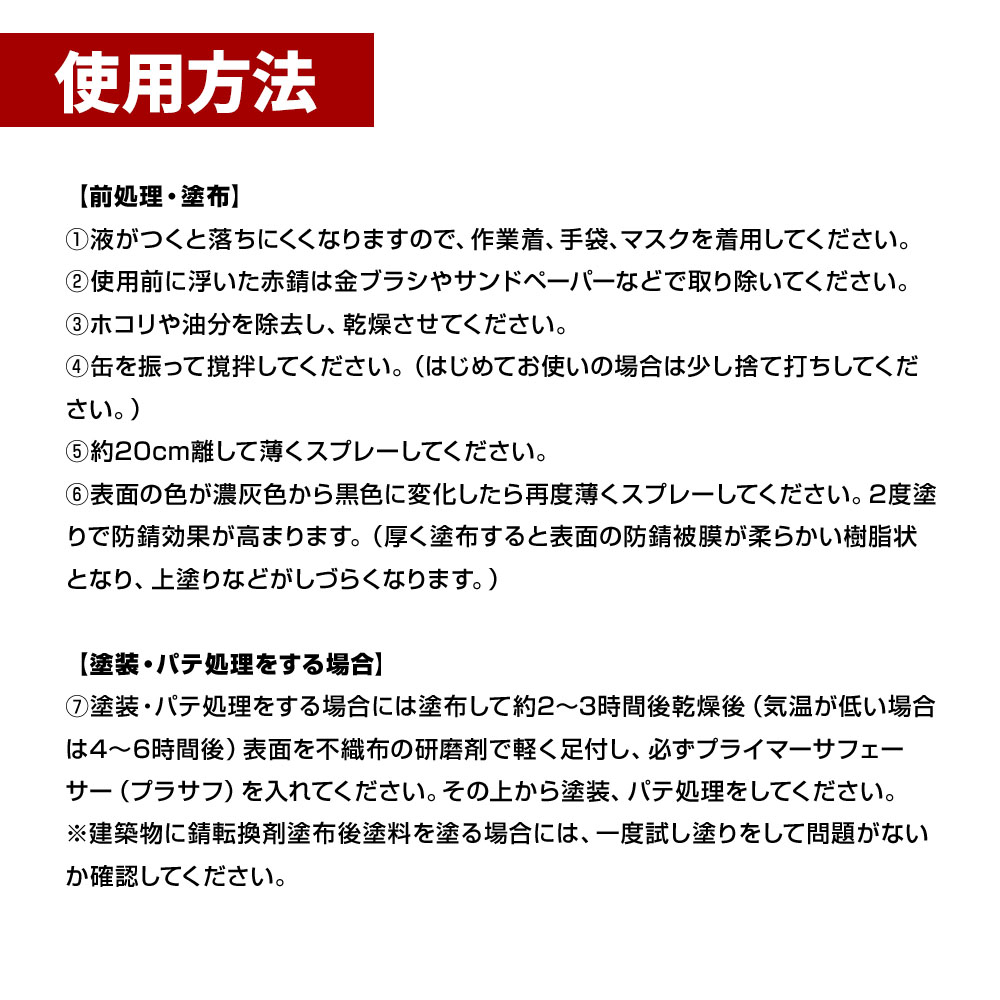 ※建物に錆転換剤を塗布後塗料を塗る場合には、一度試し塗りをして問題がないか確認してください。