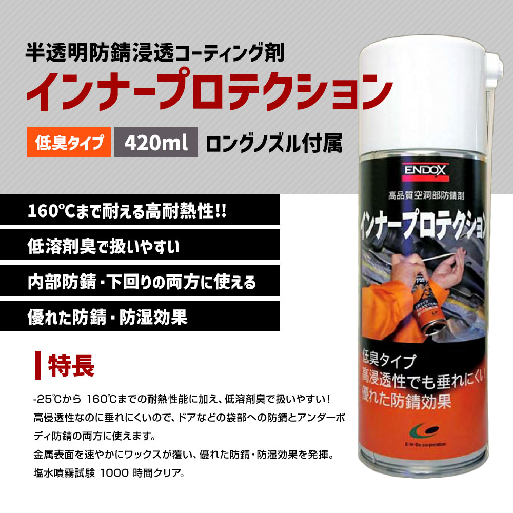 • ENDOX エンドックス 防錆剤インナープロテクションスプレーロングノズル付 420ml 1本 錆止め スプレー サビドメ 80119