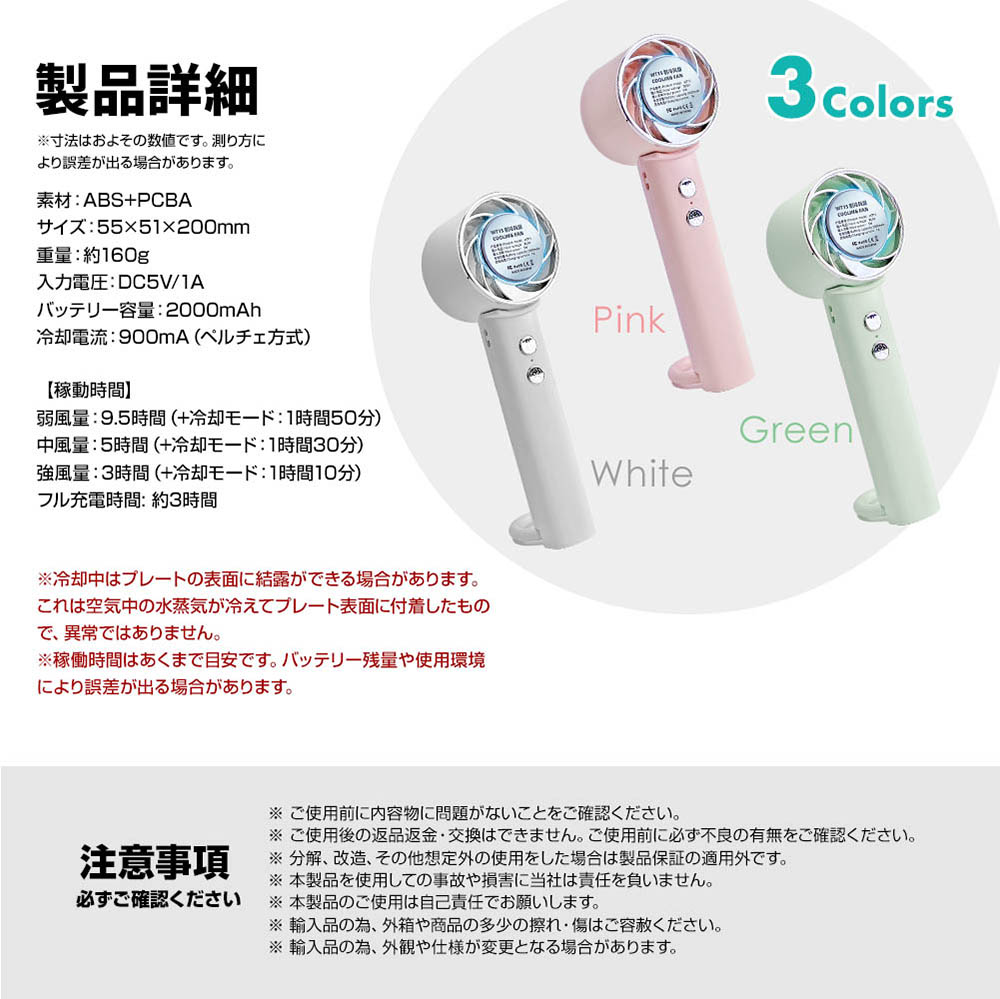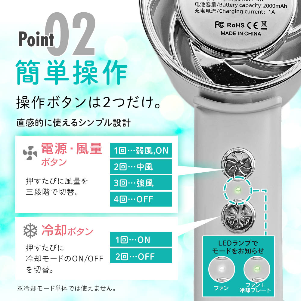 ※冷却モード中はLEDインジケーターはホワイト+グリーン点灯になります。正面からはホワイト点灯が見え、角度を変えるとグリーン点灯が見えます。