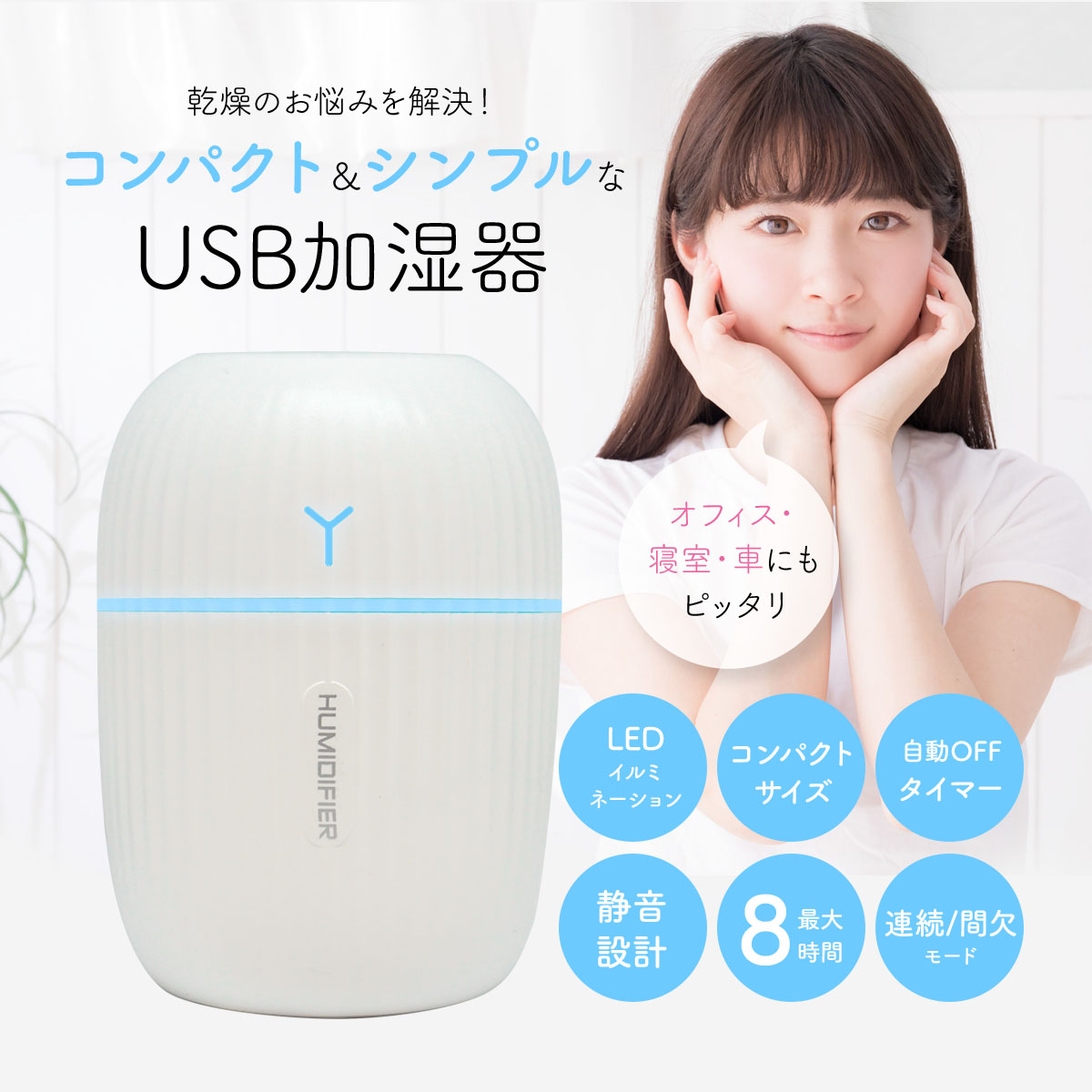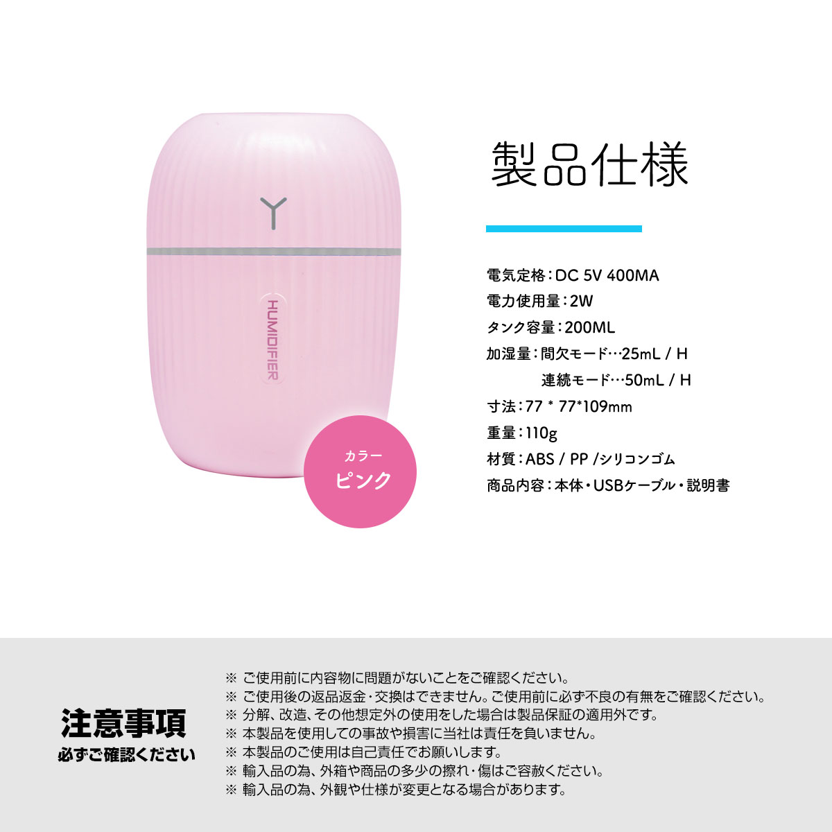 • 加湿器 卓上加湿器 USB 小型 超音波 大容量 ミストボックス USB加湿器 卓上 オフィス 長時間 車載 携帯加湿器 7色LED ミニ 加湿機 ピンク