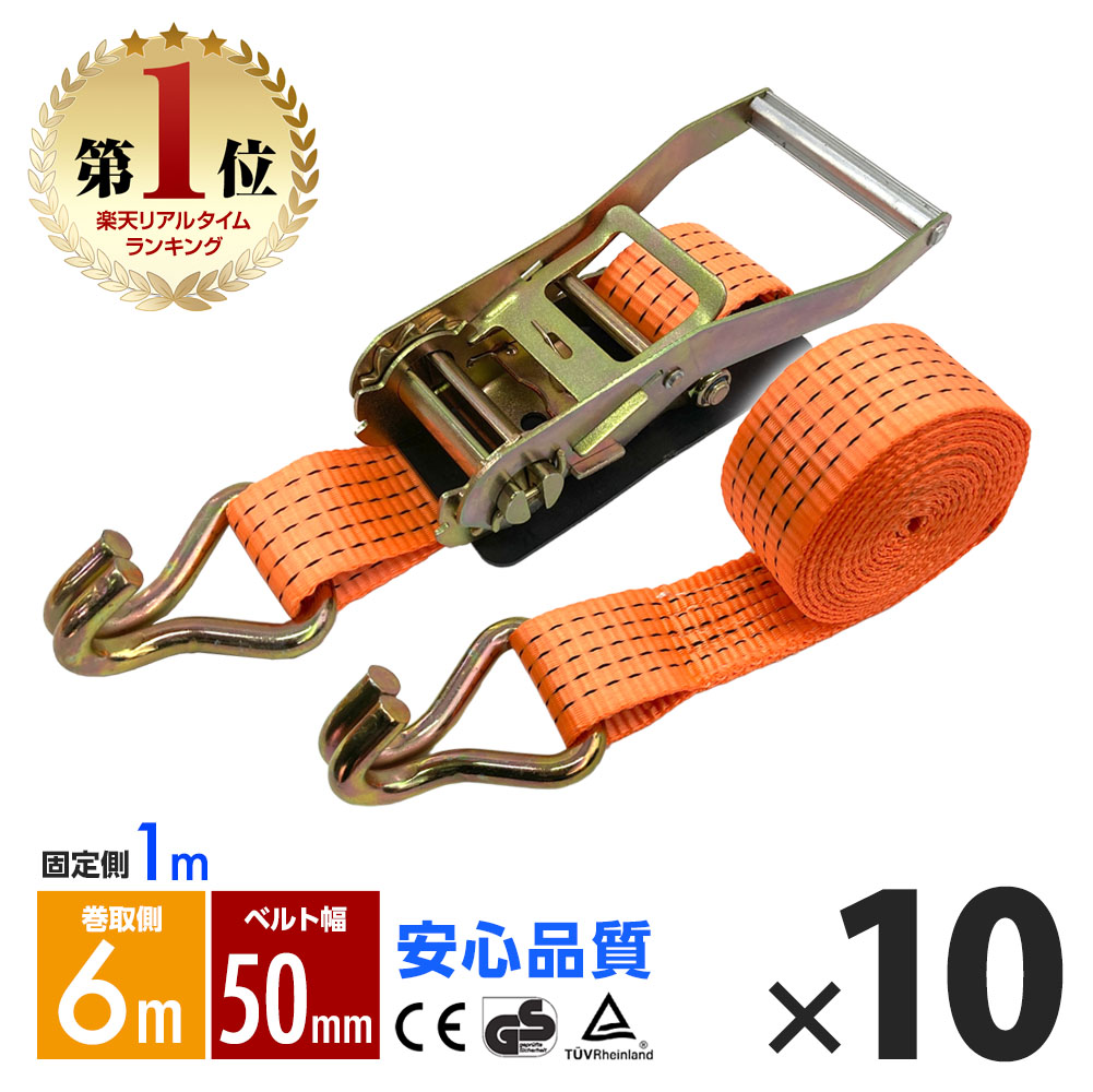 ラッシングベルト フック トラック 幅 50mm ラチェットベルト ラチェット式 固定側1m 巻側6m 荷重4000kg タイダウンベルト 10本set 1年保証
