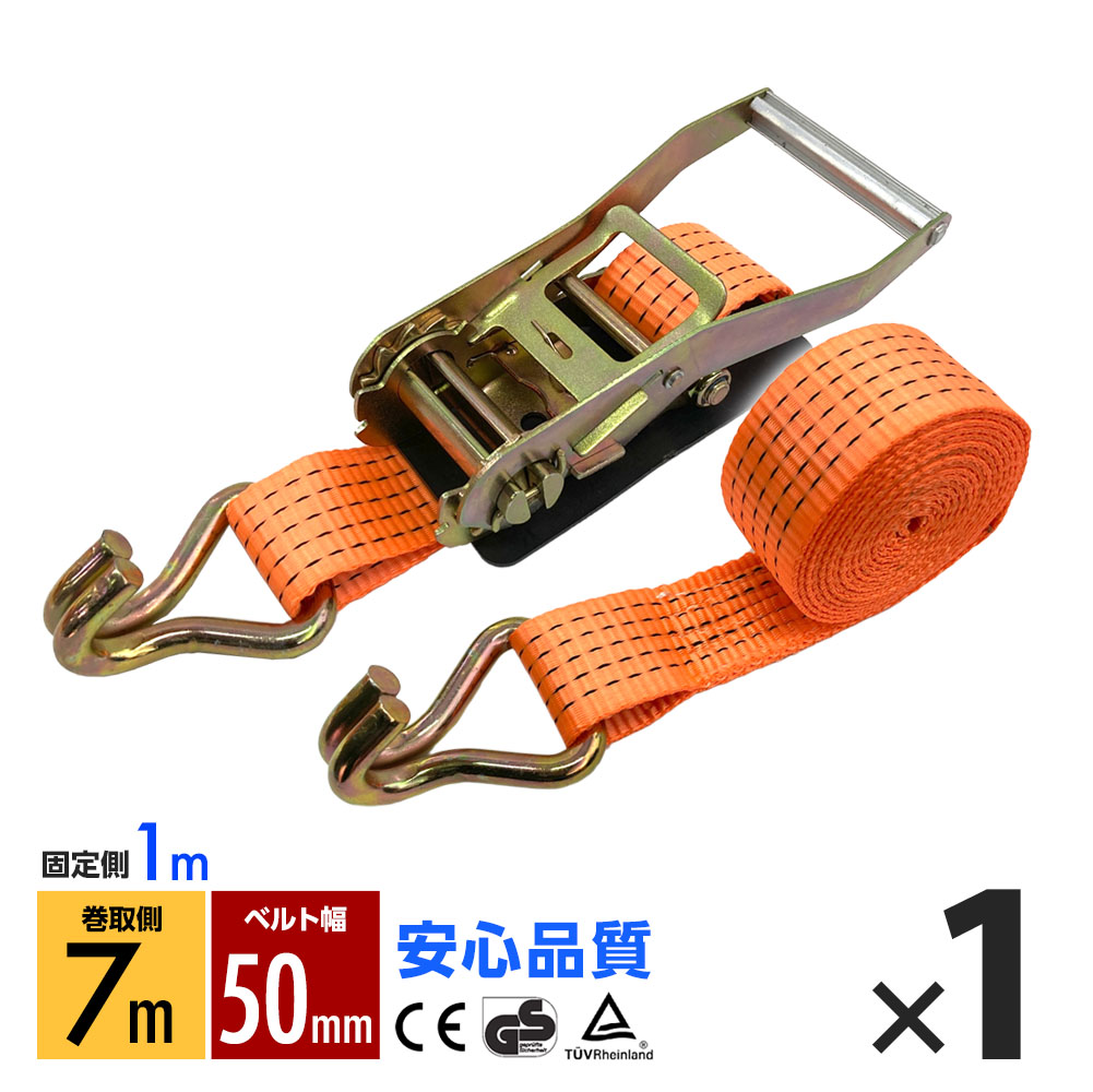 ラッシングベルト フック トラック 幅 50mm ラチェットベルト ラチェット式 固定側1m 巻側7m 荷重4000kg タイダウンベルト 1本set 1年保証