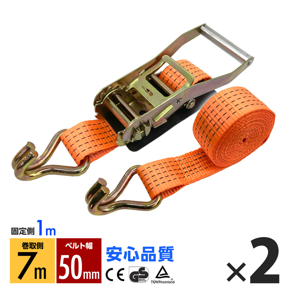 ラッシングベルト フック トラック 幅 50mm ラチェットベルト ラチェット式 固定側1m 巻側7m 荷重4000kg タイダウンベルト 2本set 1年保証