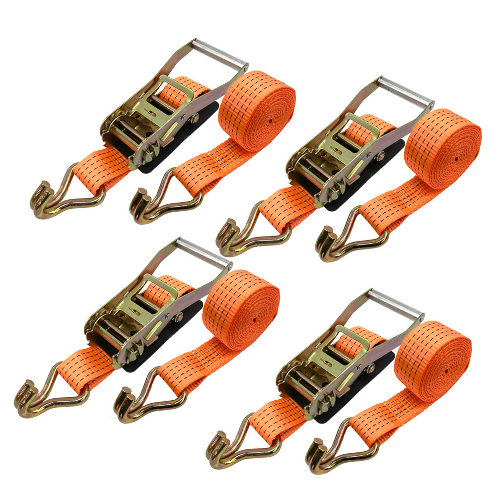 ラッシングベルト フック トラック 幅 50mm ラチェットベルト ラチェット式 固定側1m 巻側6m 荷重4000kg タイダウンベルト 4本set 1年保証
