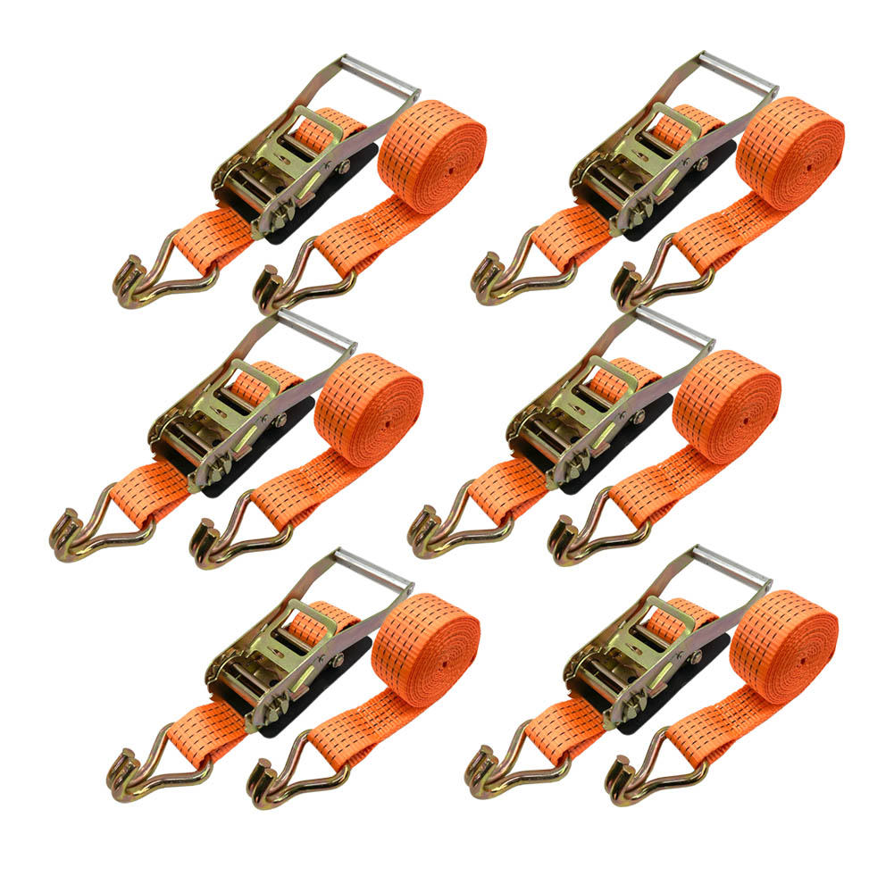 ラッシングベルト フック トラック 幅 50mm ラチェットベルト ラチェット式 固定側1m 巻側6m 荷重4000kg タイダウンベルト 6本set 1年保証