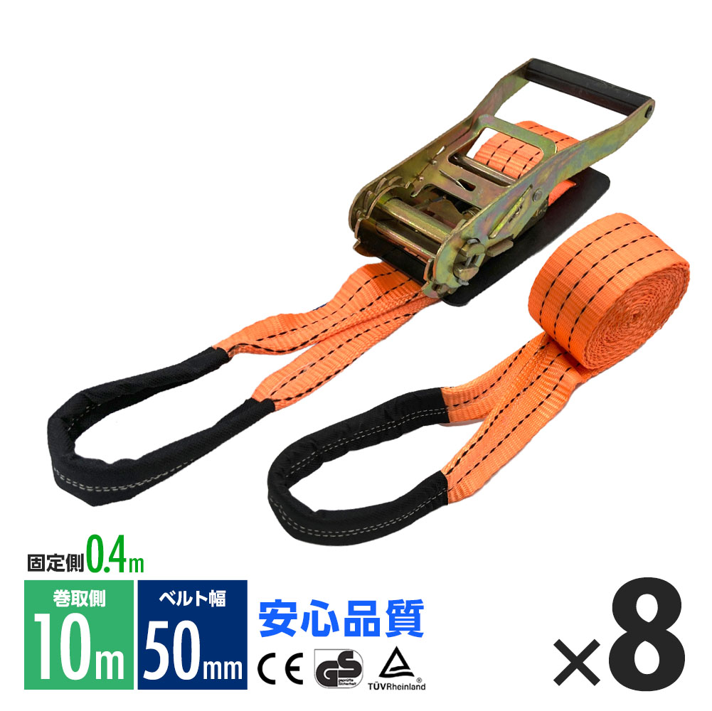 ラッシングベルト ワッカ トラック用 幅 50mm ラチェットベルト ラチェット式 固定側0.4m 巻側10m 荷重2000k タイダウンベルト 8本 1年保証