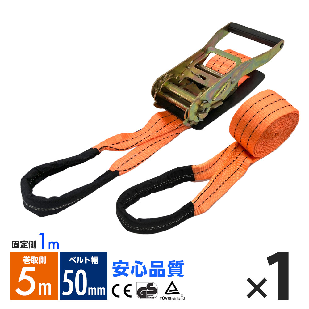 ラッシングベルト ワッカ トラック用 幅 50mm ラチェットベルト ラチェット式 固定側1m 巻側5m 荷重2000k タイダウンベルト 1本 1年保証