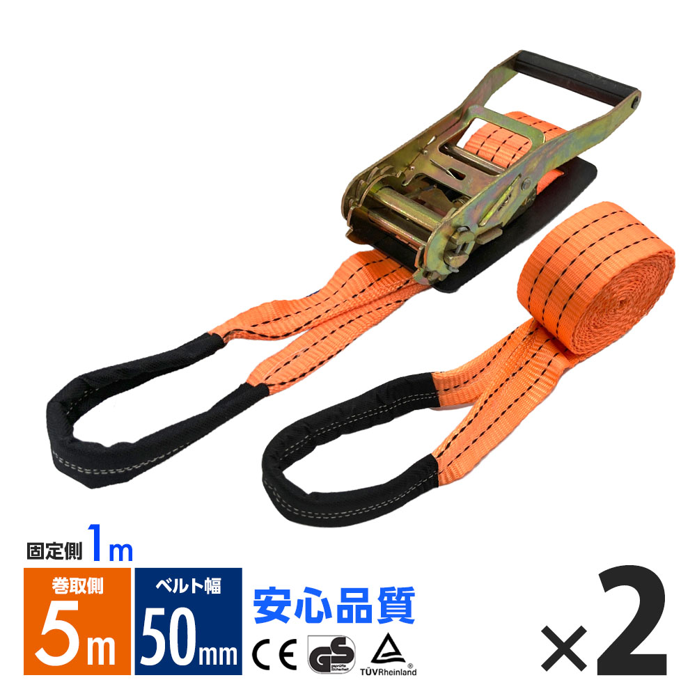 ラッシングベルト ワッカ トラック用 幅 50mm ラチェットベルト ラチェット式 固定側1m 巻側5m 荷重2000k タイダウンベルト 2本 1年保証