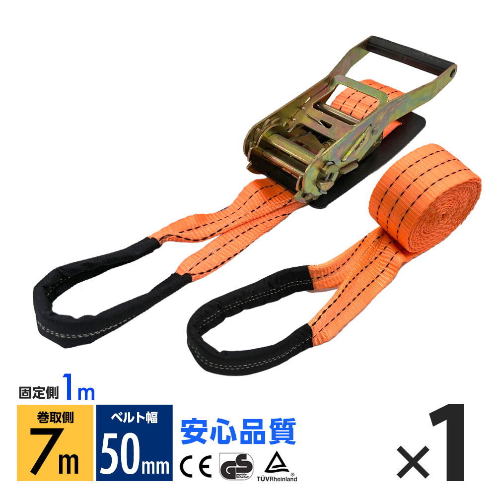 ラッシングベルト ワッカ トラック用 幅 50mm ラチェットベルト ラチェット式 固定側1m 巻側7m 荷重2000k タイダウンベルト 1本 1年保証