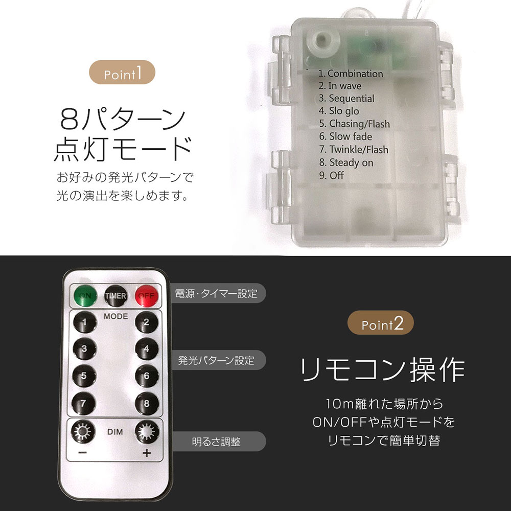リモコンで発光パターンの変更が可能となっております!シチュエーションに合わせてご利用ください。