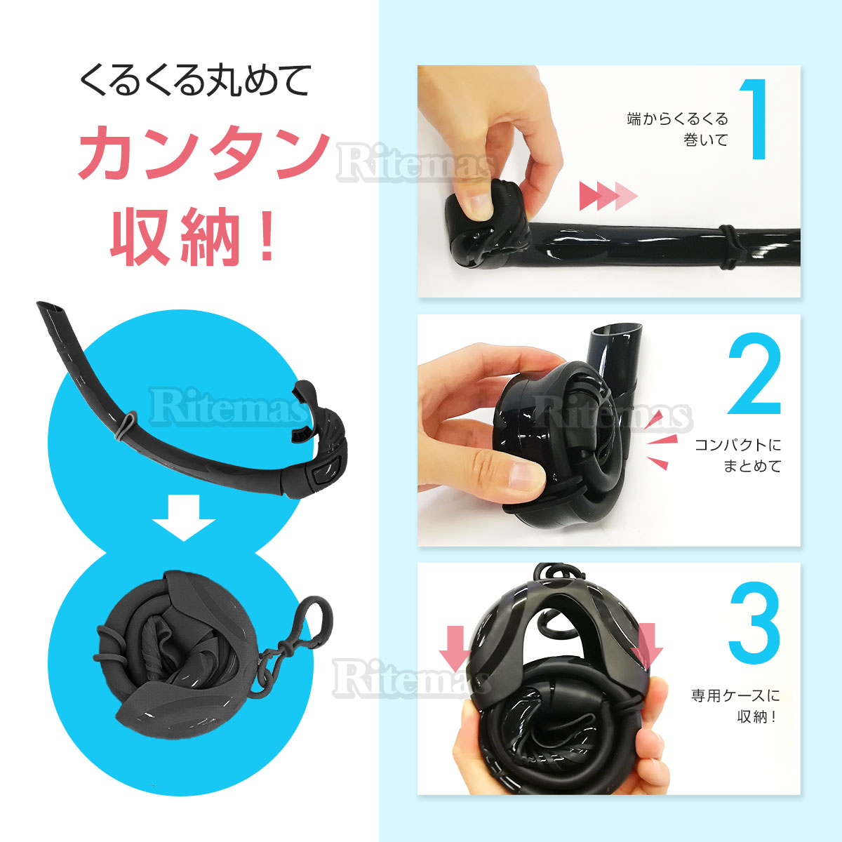 • シュノーケル 折りたたみ シリコン 収納ケース ダイビングチューブ チューブ スノーケル コンパクト お手軽 折り畳み 折畳み