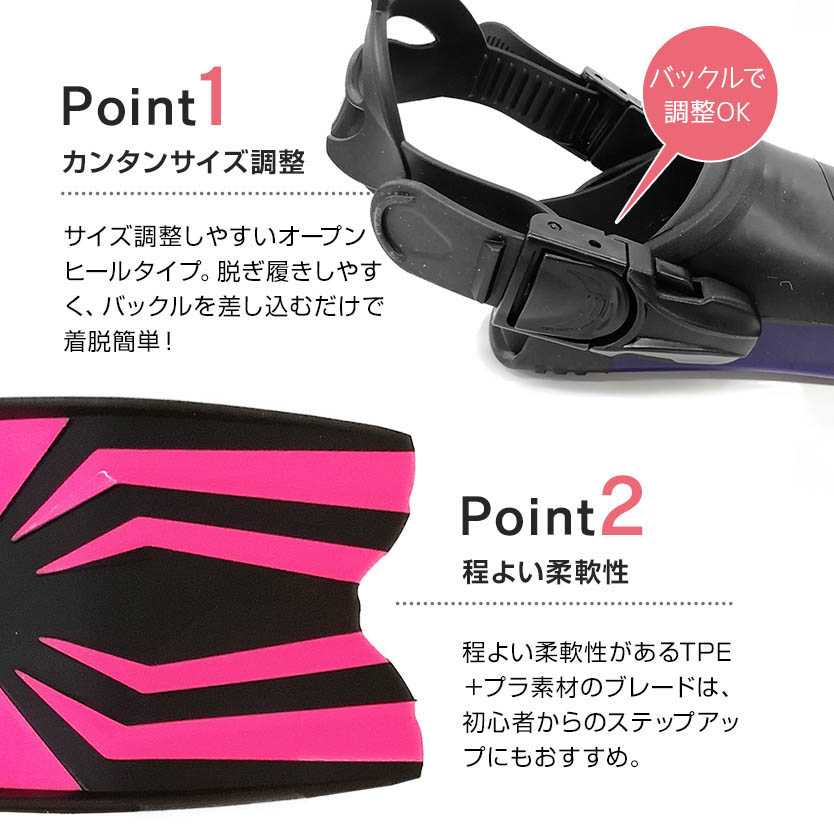 フィン シュノーケル 足ひれ スノーケリング シュノーケリング スキューバーダイビング マリンスポーツ 素潜り ピンク Lサイズ
