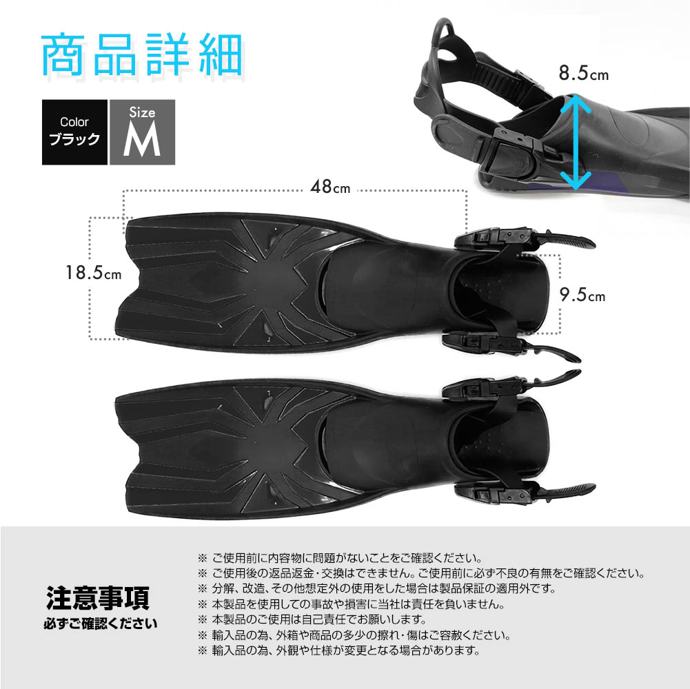フィン シュノーケル 足ひれ スノーケリング シュノーケリング スキューバーダイビング マリンスポーツ 素潜り 川 黒 ブラック Mサイズ