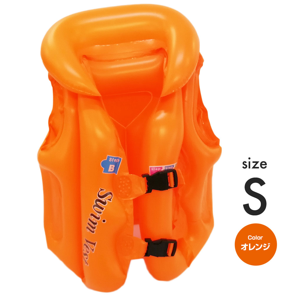 浮き輪型 ライフジャケット 子供用 ベスト ジュニア キッズ 幼児 こども スイミング プール 海水浴 水遊び オレンジ 橙 Sサイズ 3~4歳推奨