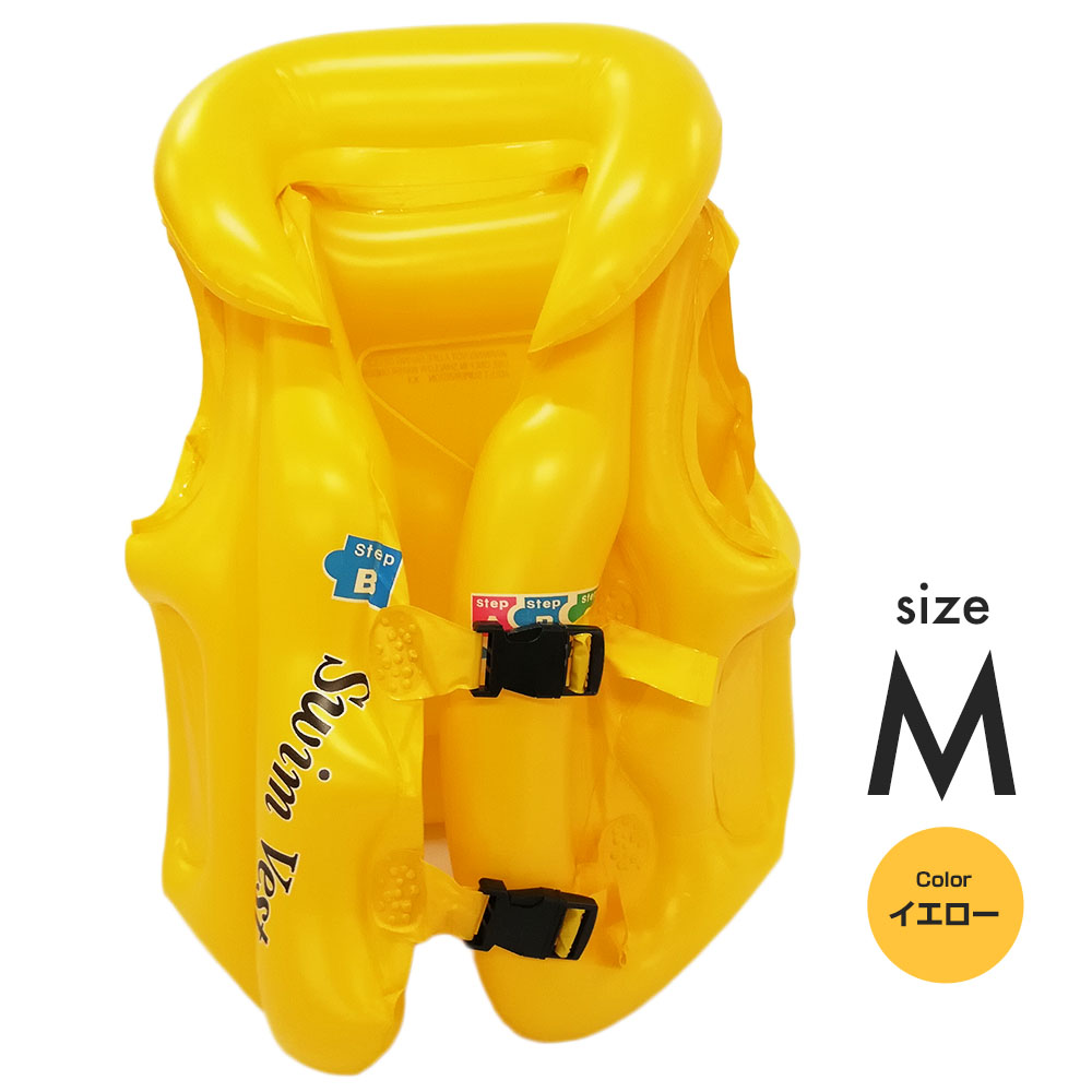 浮き輪型 ライフジャケット 子供 ベスト ジュニア キッズ 幼児 こども スイミング プール 海水浴 水遊び イエロー 黄色 Mサイズ 4~6歳推奨