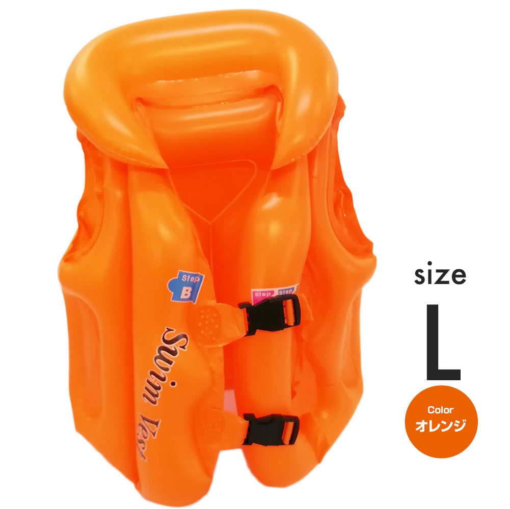浮き輪型 ライフジャケット 子供用 ベスト ジュニア キッズ 幼児 こども スイミング プール 海水浴 水遊び オレンジ 橙 Lサイズ 6~8歳推奨