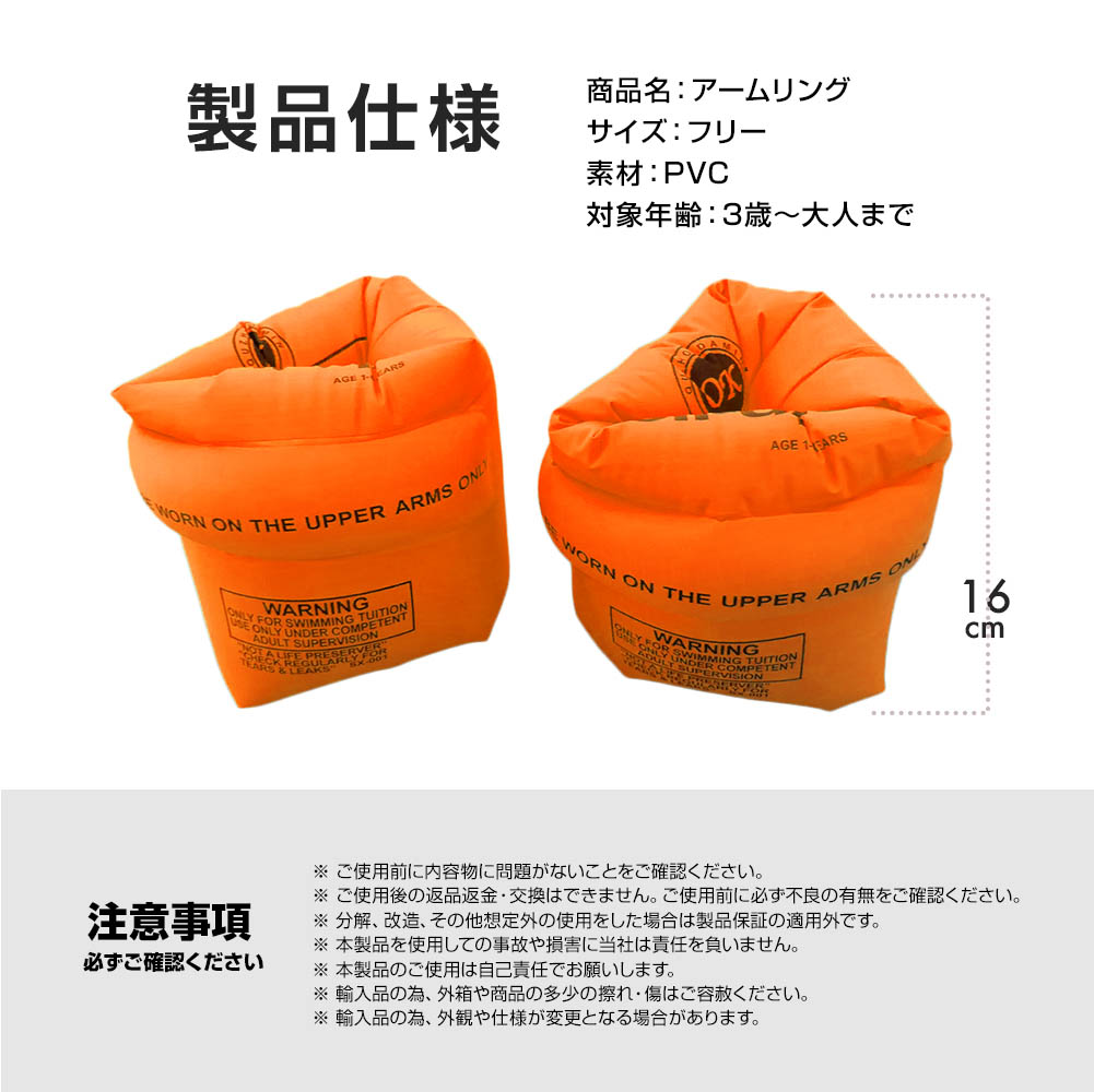 浮き輪 2個セット アームリング アームヘルパー アームブイ 腕用浮き輪 子供用 幼児用 海 川 プール 水泳 補助具 オレンジ 橙