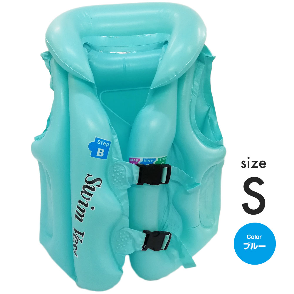 浮き輪型 ライフジャケット 子供用 ベスト ジュニア キッズ 幼児 こども スイミング プール 海水浴 水遊び ブルー 青 Sサイズ 3~4歳推奨
