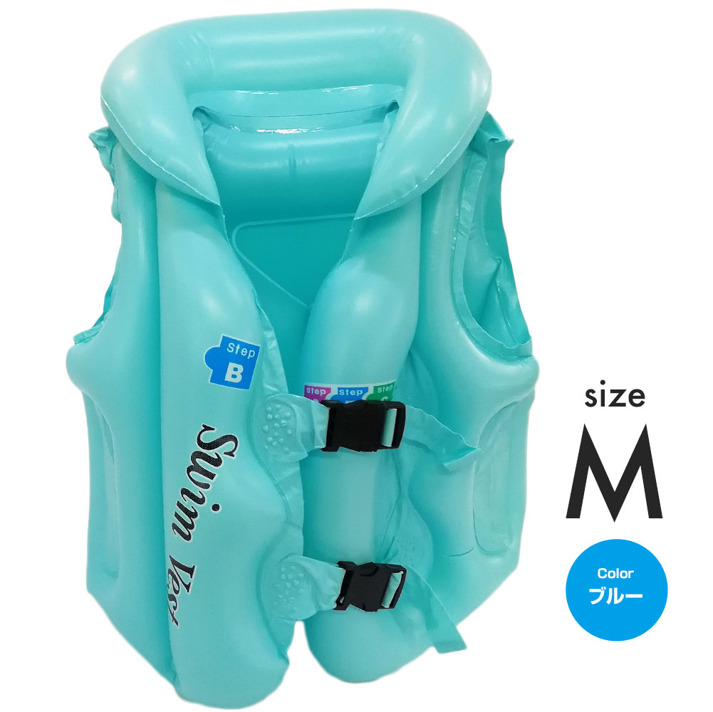 浮き輪型 ライフジャケット 子供用 ベスト ジュニア キッズ 幼児 こども スイミング プール 海水浴 水遊び ブルー 青 Mサイズ 4~6歳推奨