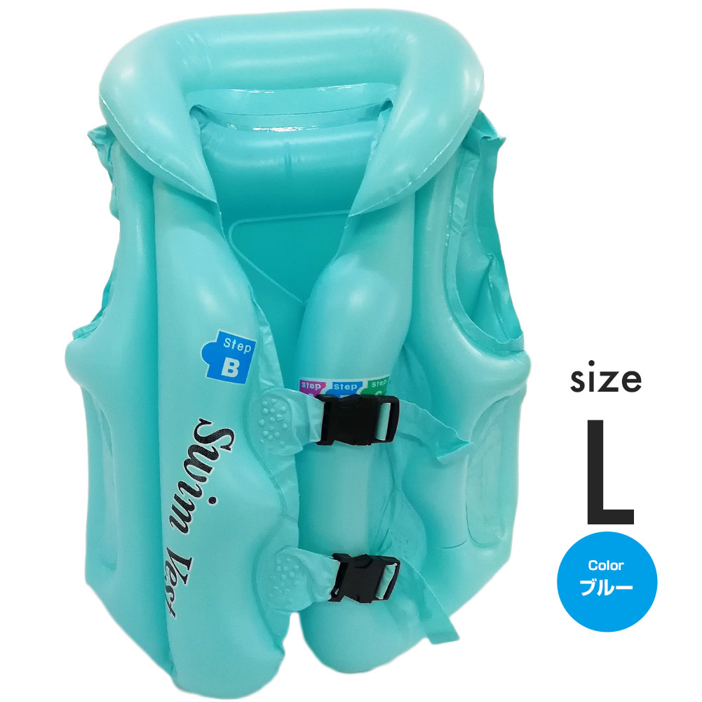 浮き輪型 ライフジャケット 子供用 ベスト ジュニア キッズ 幼児 こども スイミング プール 海水浴 水遊び ブルー 青 Lサイズ 6~8歳推奨