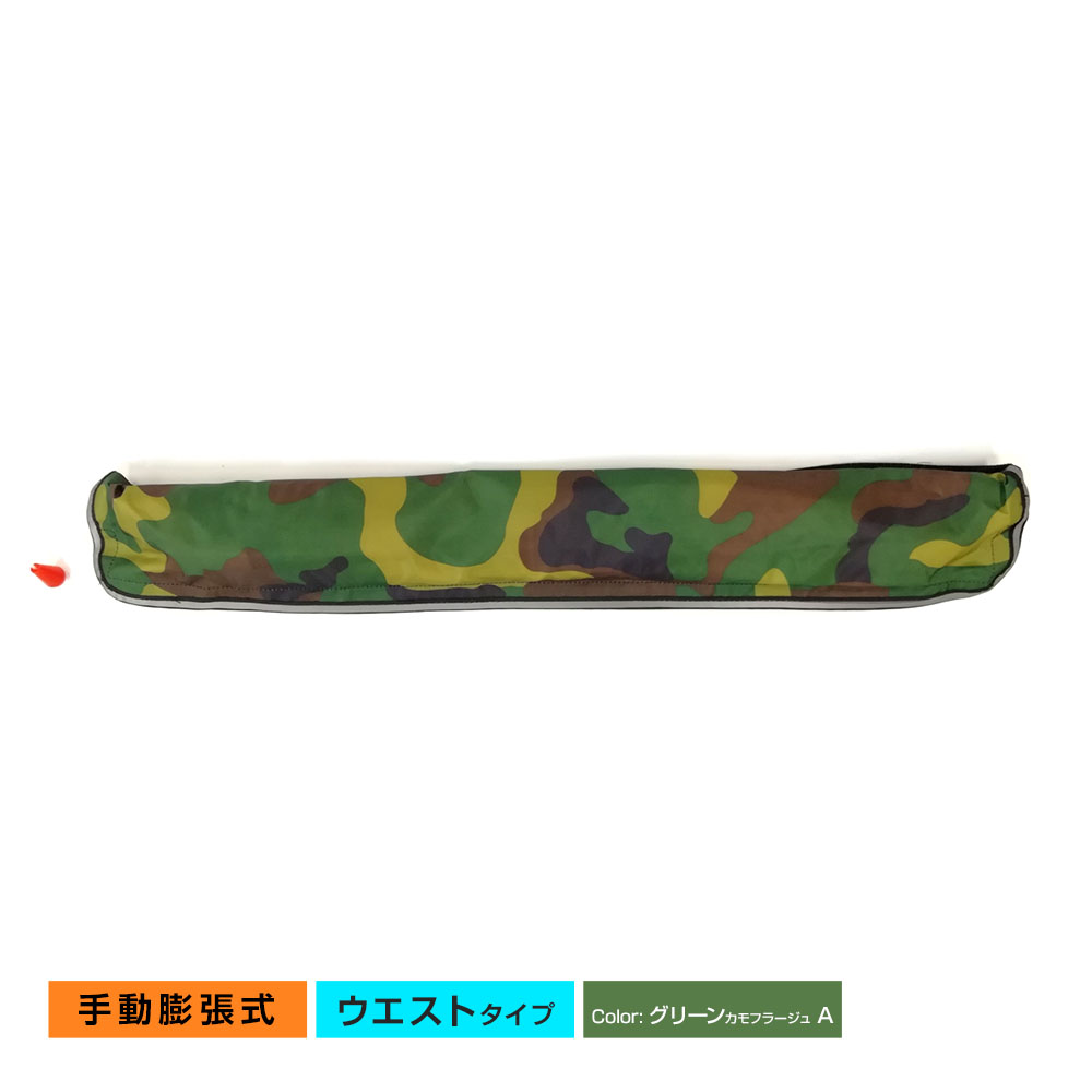 ライフジャケット 手動膨張式 腰タイプ 腰 ウエスト ベルト型 ベルト 緑カモフラージュA 緑 グリーン カモフラージュ 救命胴衣 男女兼用