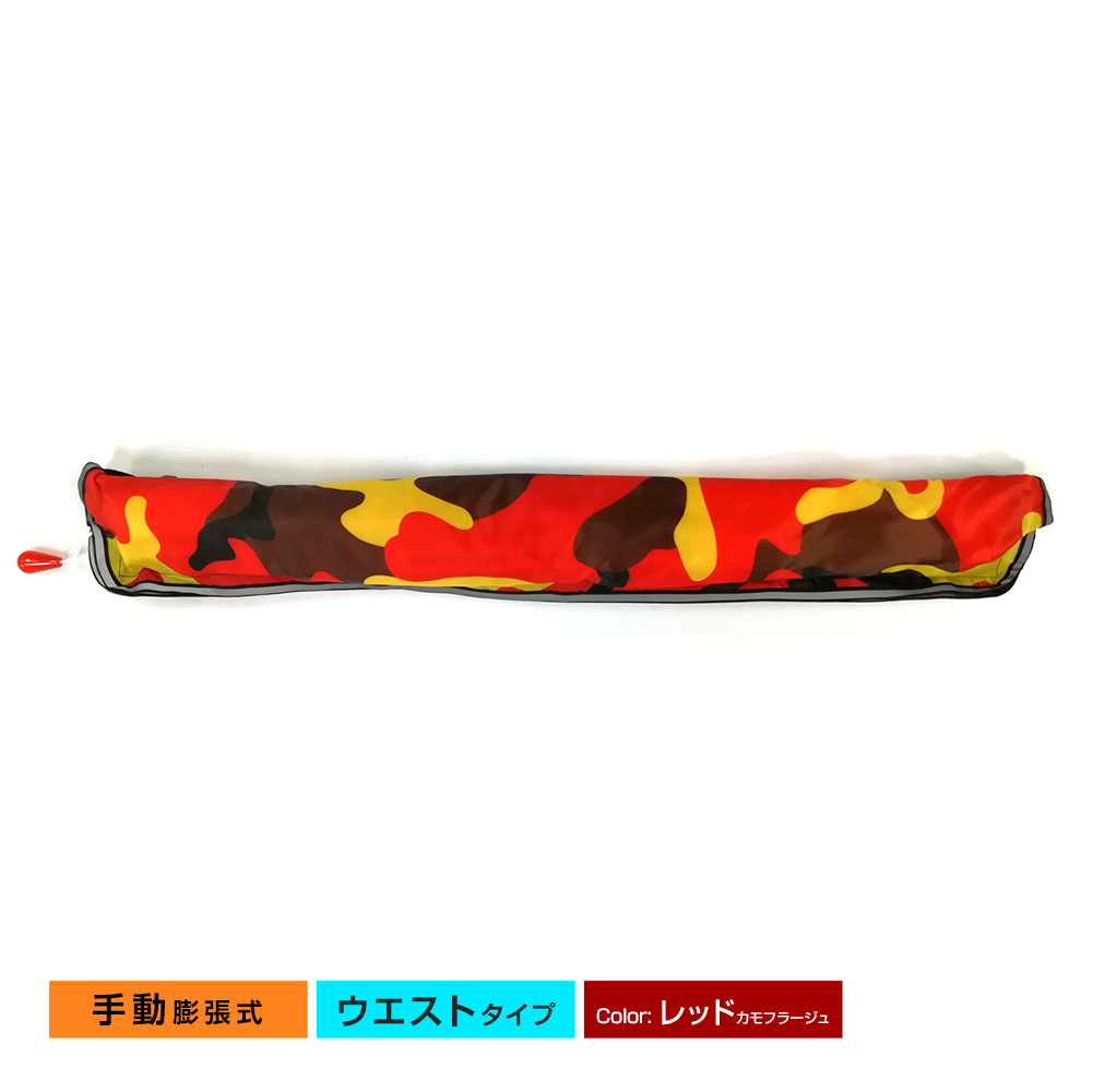 ライフジャケット 手動膨張式 腰タイプ 腰 ウエスト ベルト型 ベルト 赤カモフラージュ レッド 赤 カモフラージュ 救命胴衣 男女兼用