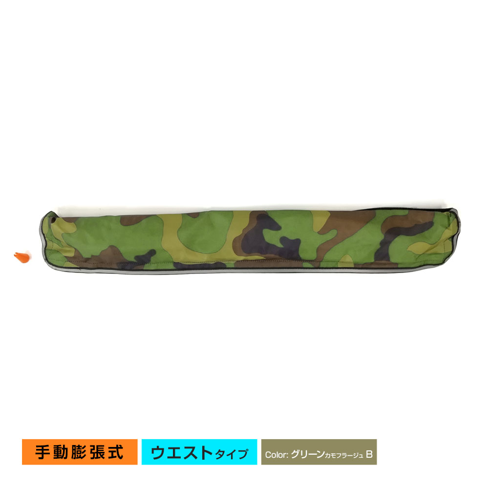 ライフジャケット 手動膨張式 腰タイプ 腰 ウエスト ベルト型 ベルト 緑カモフラージュB グリーン 緑 カモフラージュ 救命胴衣 男女兼用