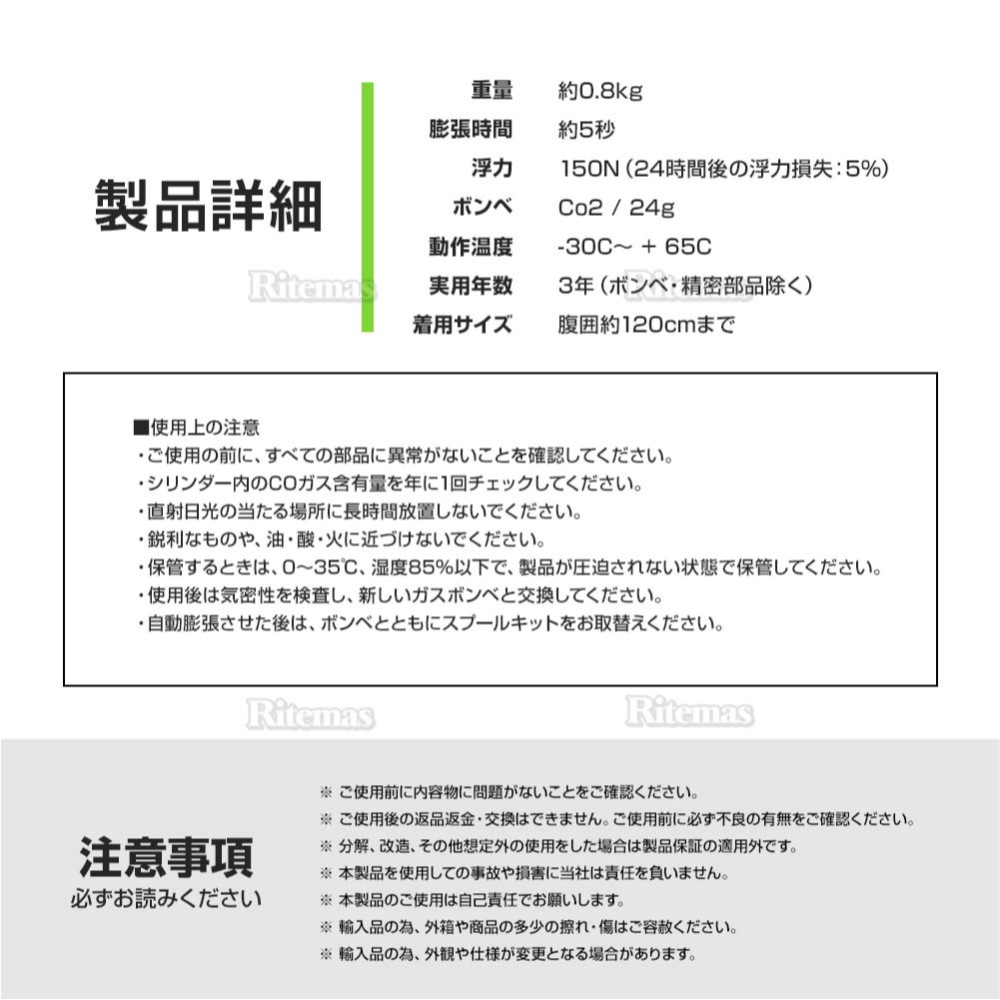 ライフジャケット 手動膨張式 腰タイプ 腰 ウエスト ベルト型 ベルト ブラック 黒 海 川 ボート カヤック 釣り 救命胴衣 男女兼用 大人用