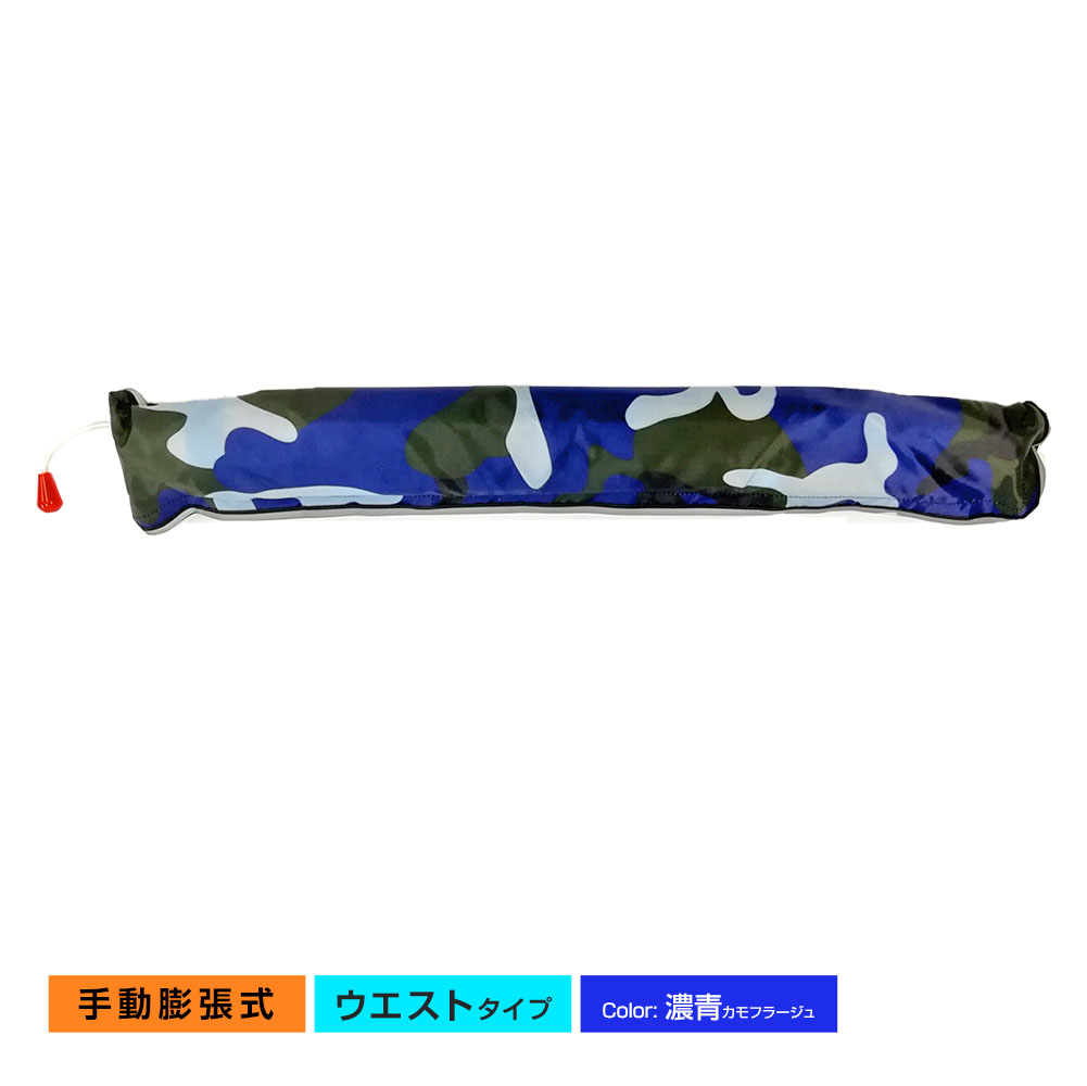 ライフジャケット 手動膨張式 腰タイプ 腰 ウエスト ベルト型 ベルト 濃青カモフラージュ 青 ブルー カモフラージュ 救命胴衣 男女兼用