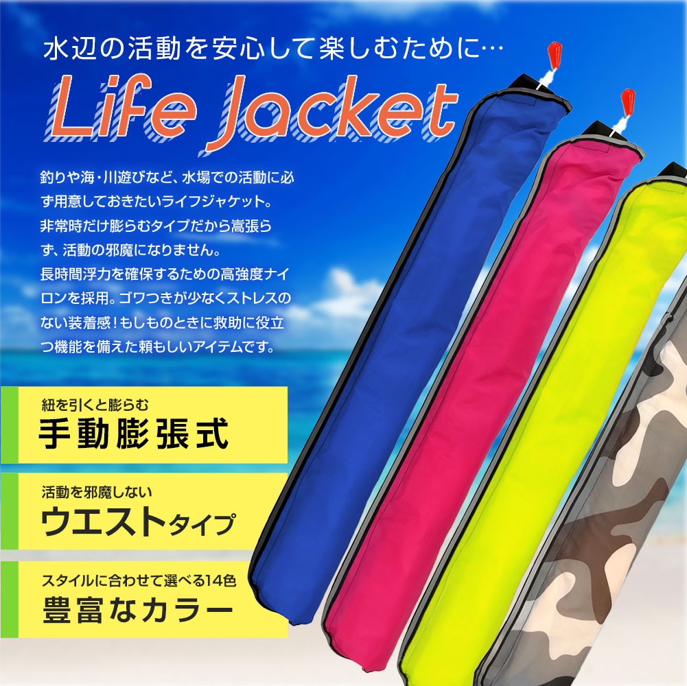 ライフジャケット 手動膨張式 腰タイプ 腰 ウエスト ベルト型 ベルト 青 ブルー 海 川 ボート カヤック 釣り 救命胴衣 男女兼用 大人用