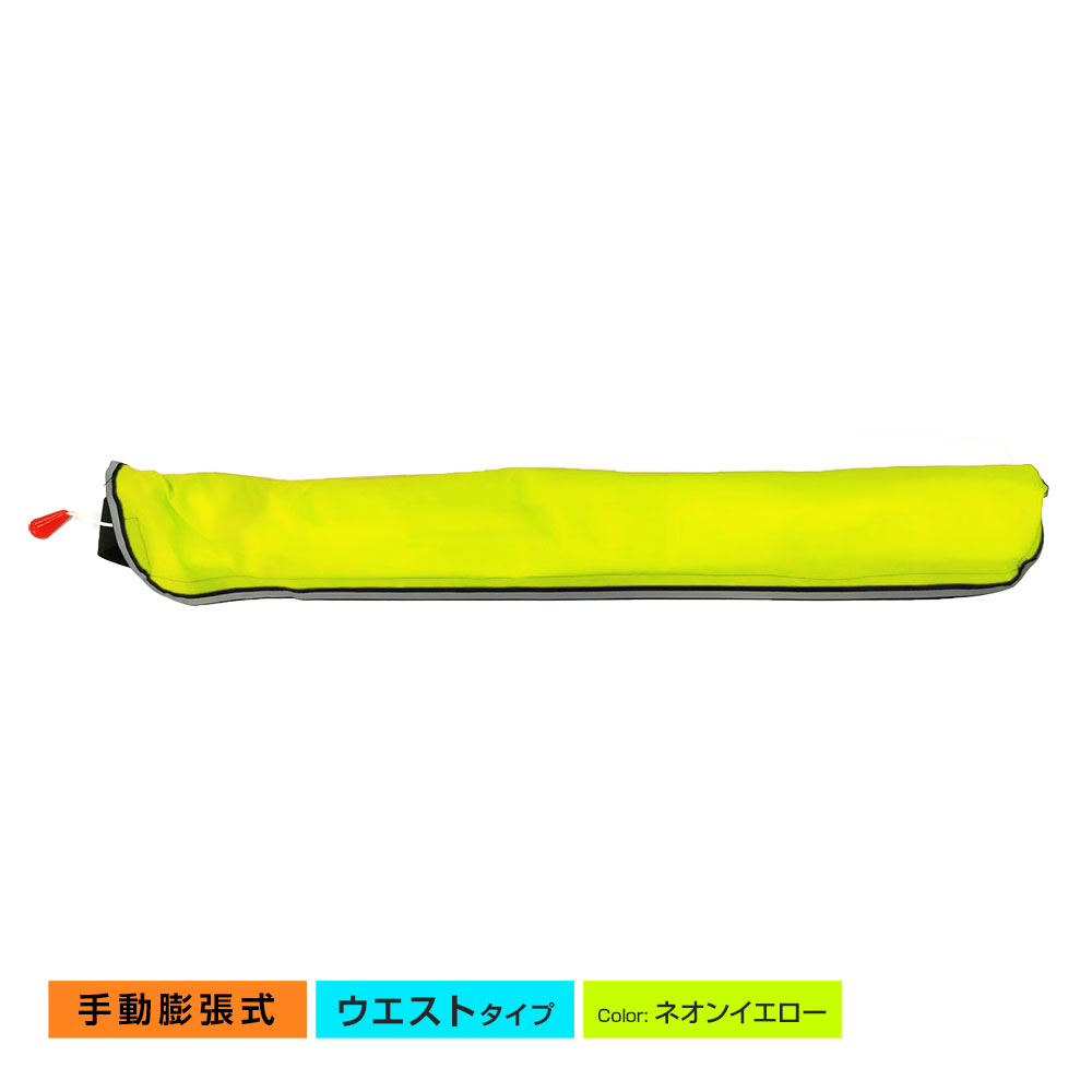 ライフジャケット 手動膨張式 腰タイプ 腰 ウエスト ベルト型 ベルト ネオンイエロー ボート カヤック 釣り 救命胴衣 男女兼用 大人用