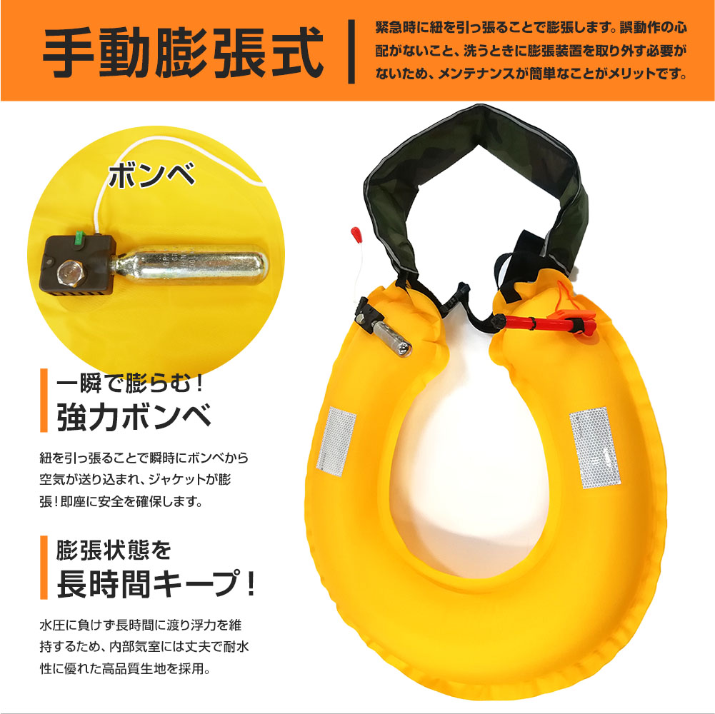 ライフジャケット 手動膨張式 腰タイプ 腰 ウエスト ベルト型 ベルト ネオンイエロー ボート カヤック 釣り 救命胴衣 男女兼用 大人用