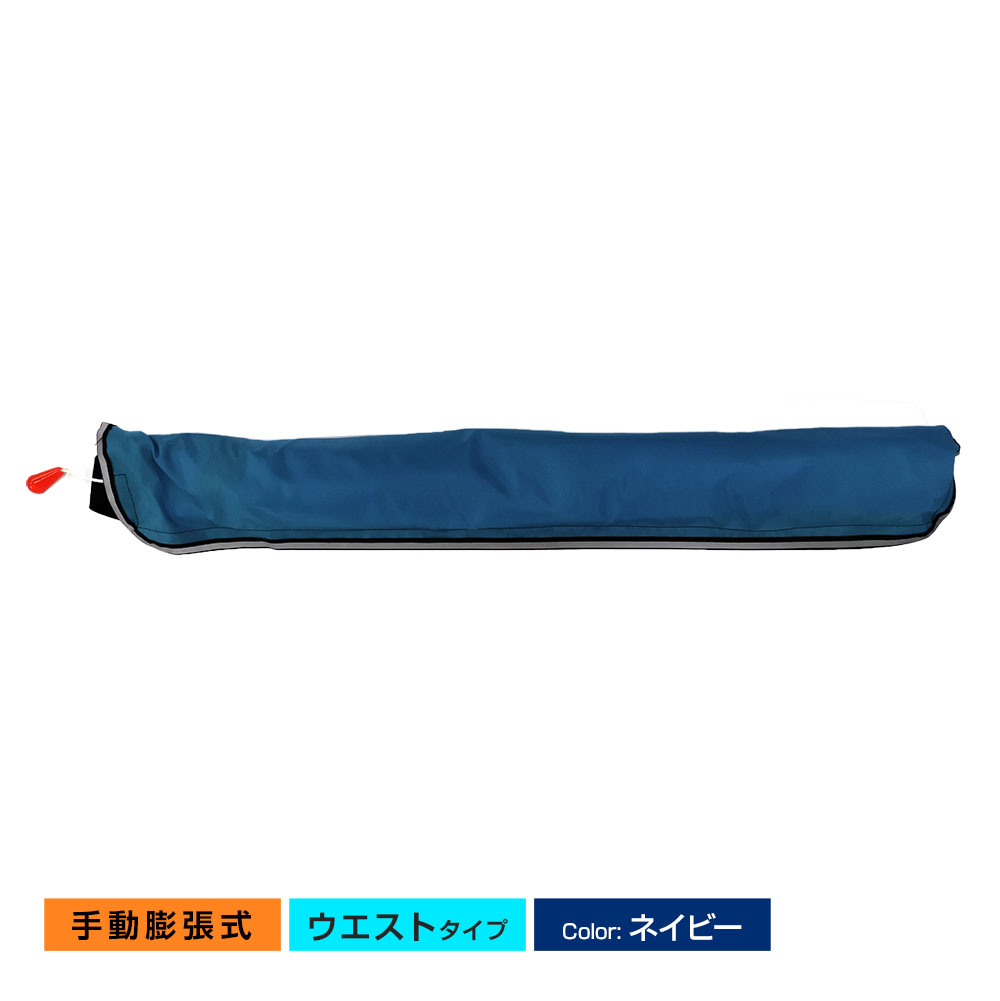 ライフジャケット 手動膨張式 腰タイプ 腰 ウエスト ベルト型 ベルト ネイビー 濃紺 海 川 ボート カヤック 釣り 救命胴衣 男女兼用 大人用