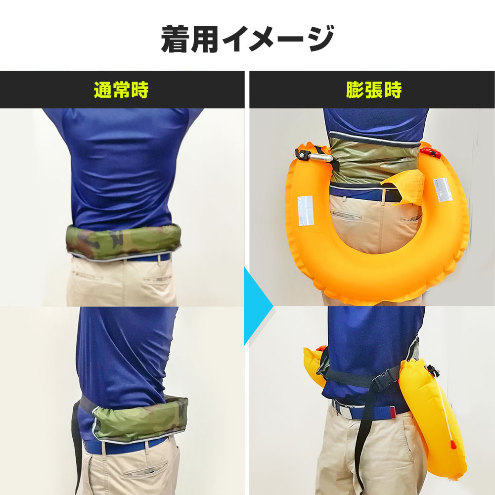 ライフジャケット 手動膨張式 腰タイプ 腰 ウエスト ベルト型 ベルト 緑カモフラージュA 緑 グリーン カモフラージュ 救命胴衣 男女兼用