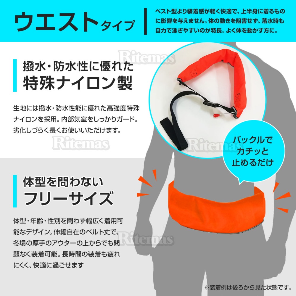 ライフジャケット 自動膨張式 腰タイプ 腰 ウエスト ベルト型 ベルト 青 ブルー 海 川 ボート カヤック 釣り 救命胴衣 男女兼用 大人用