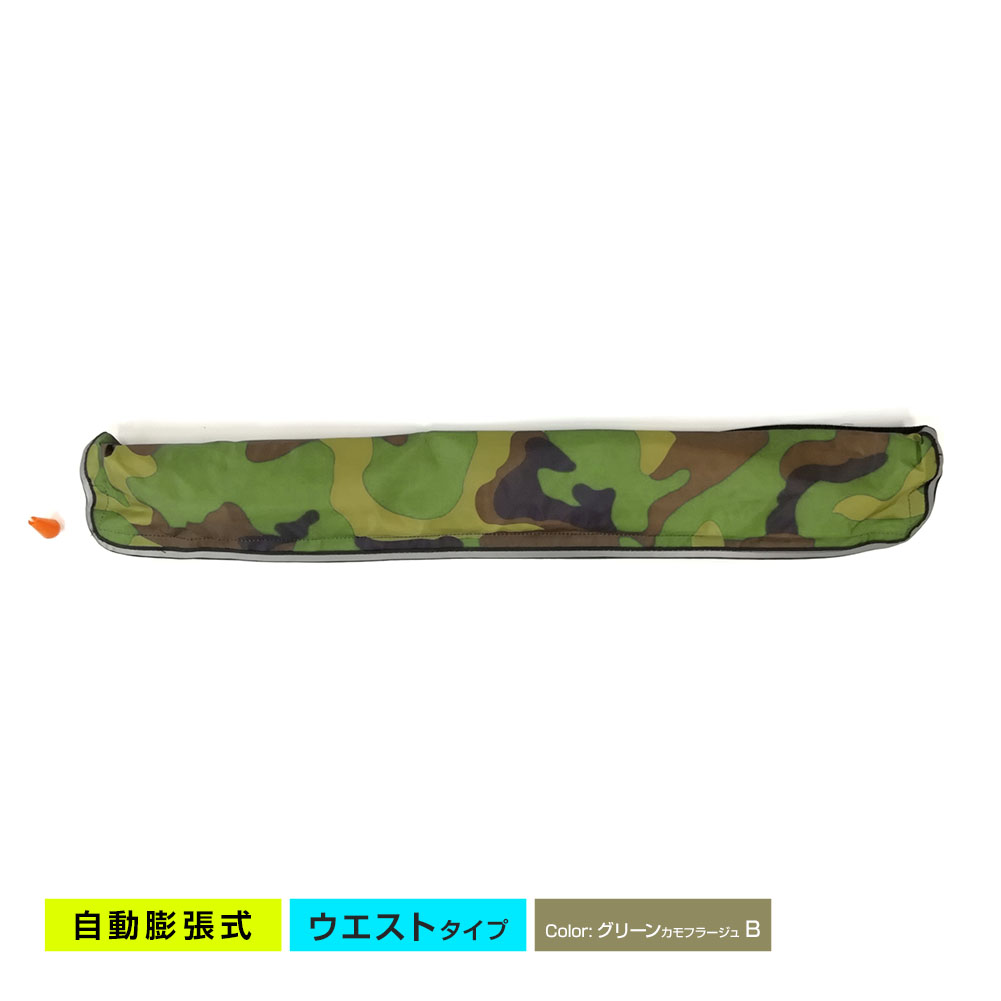 ライフジャケット 自動膨張式 腰タイプ 腰 ウエスト ベルト型 ベルト 緑カモフラージュB グリーン 緑 カモフラージュ 救命胴衣 男女兼用