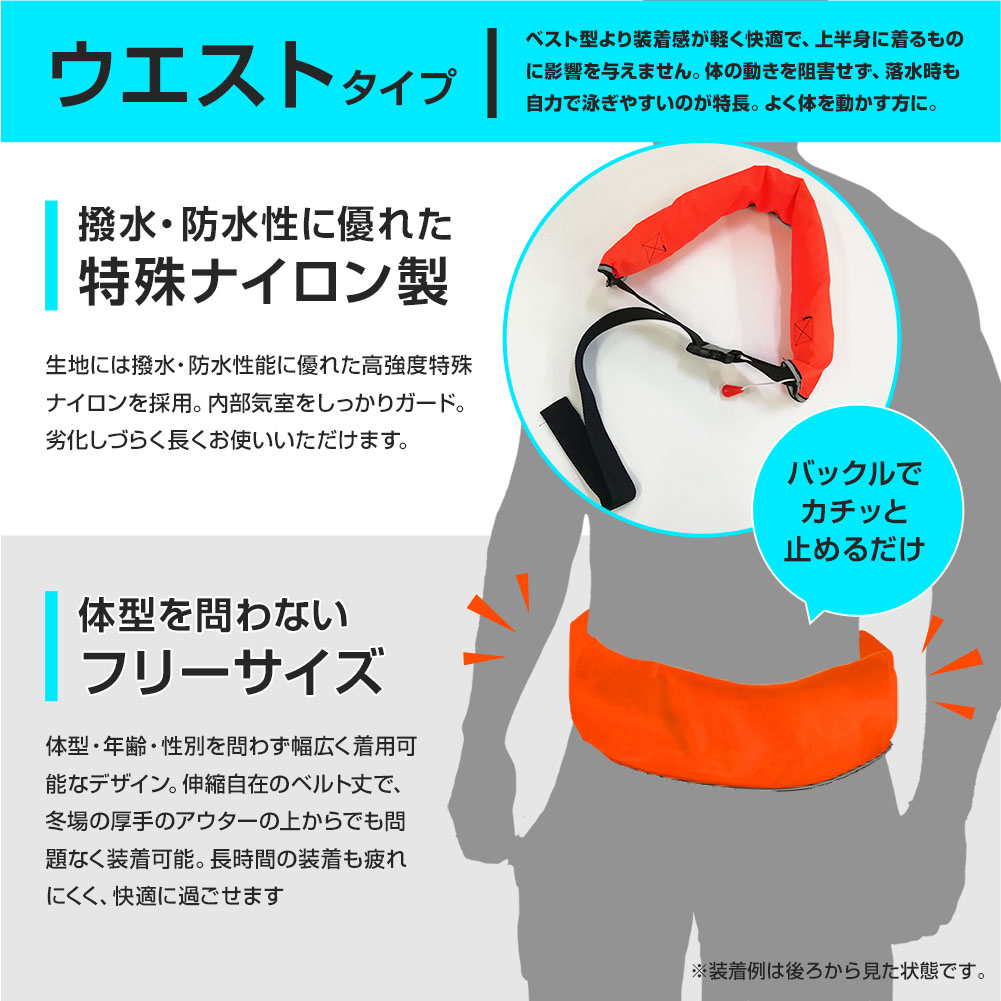 ライフジャケット 手動膨張式 腰タイプ 腰 ウエスト ベルト型 ベルト 青 ブルー 海 川 ボート カヤック 釣り 救命胴衣 男女兼用 大人用