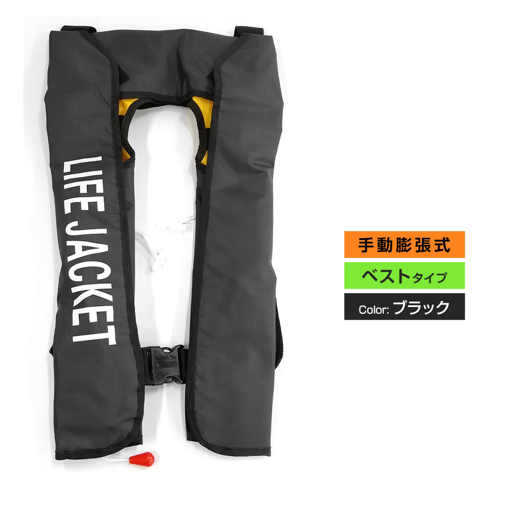 ライフジャケット 手動膨張式 首タイプ 首 ベスト型 ベスト ブラック 黒 海 川 ボート カヤック 釣り 救命胴衣 男女兼用 大人用