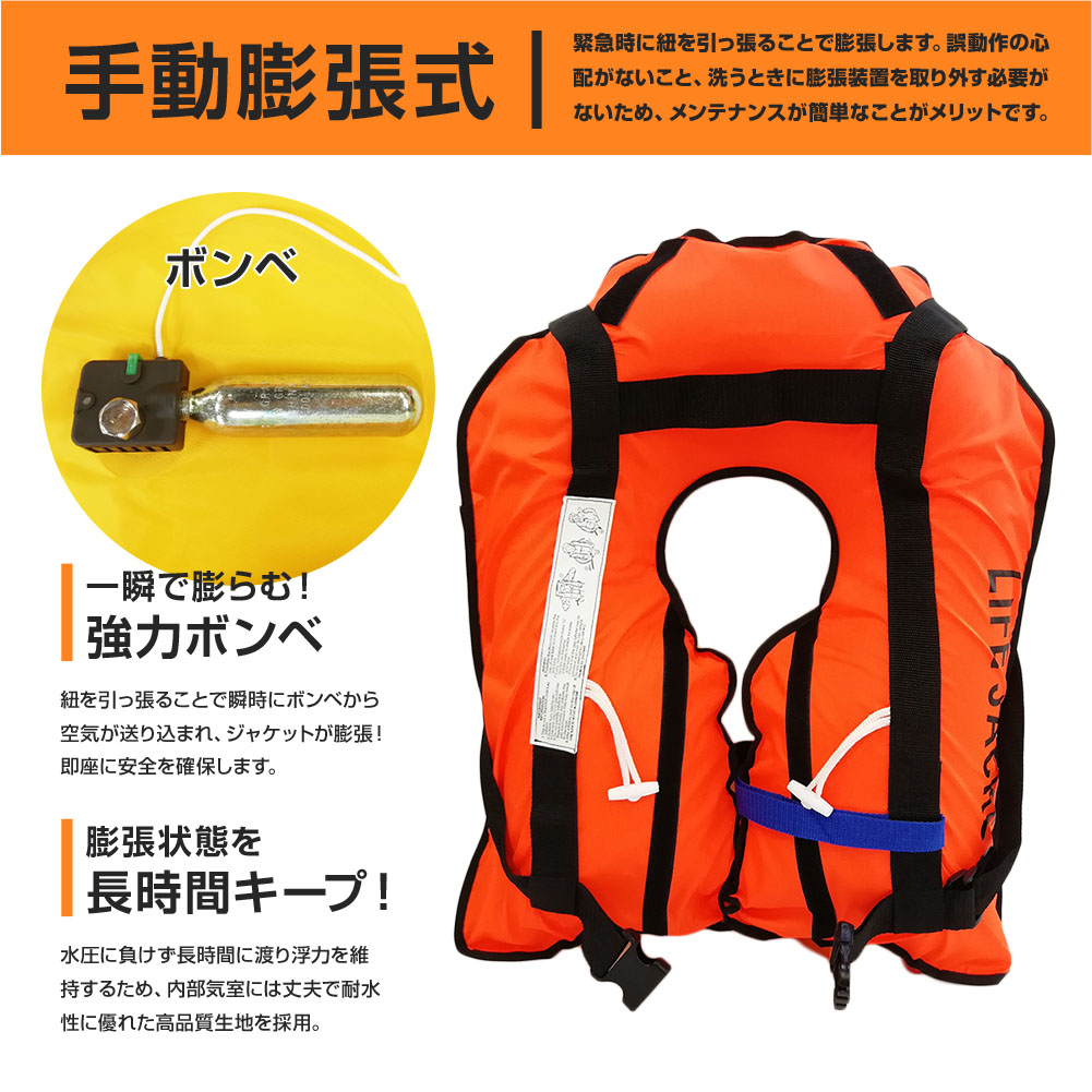 ライフジャケット 手動膨張式 腰タイプ 腰 ウエスト ベルト型 ベルト 青 ブルー 海 川 ボート カヤック 釣り 救命胴衣 男女兼用 大人用