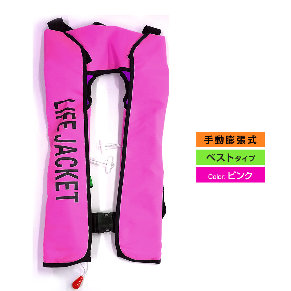 ライフジャケット 手動膨張式 首タイプ 首 ベスト型 ベスト ピンク 桃 海 川 ボート カヤック 釣り フィッシング 救命胴衣 男女兼用 大人用
