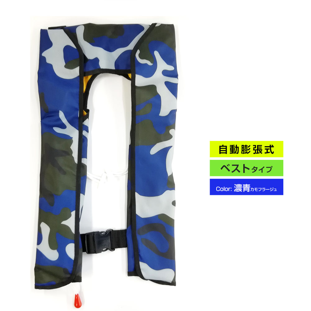 ライフジャケット 自動膨張式 首タイプ 首 ベスト型 ベスト 濃青カモフラージュ 青 ブルー カモフラージュ 救命胴衣 男女兼用 大人用