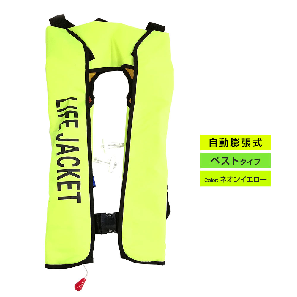 ライフジャケット 自動膨張式 首タイプ 首 ベスト型 ベスト ネオンイエロー 海 川 ボート カヤック 釣り 救命胴衣 男女兼用 大人用