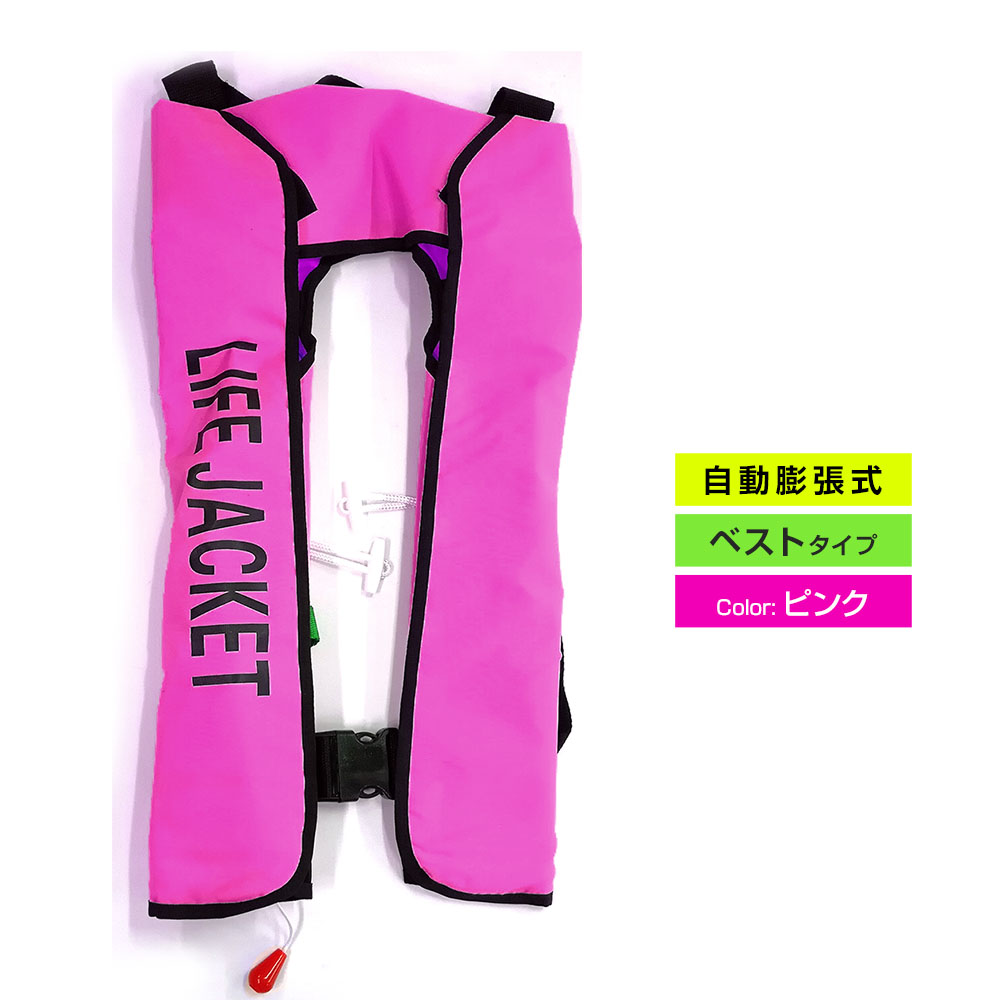 ライフジャケット 自動膨張式 首タイプ 首 ベスト型 ベスト ピンク 桃 海 川 ボート カヤック 釣り フィッシング 救命胴衣 男女兼用 大人用