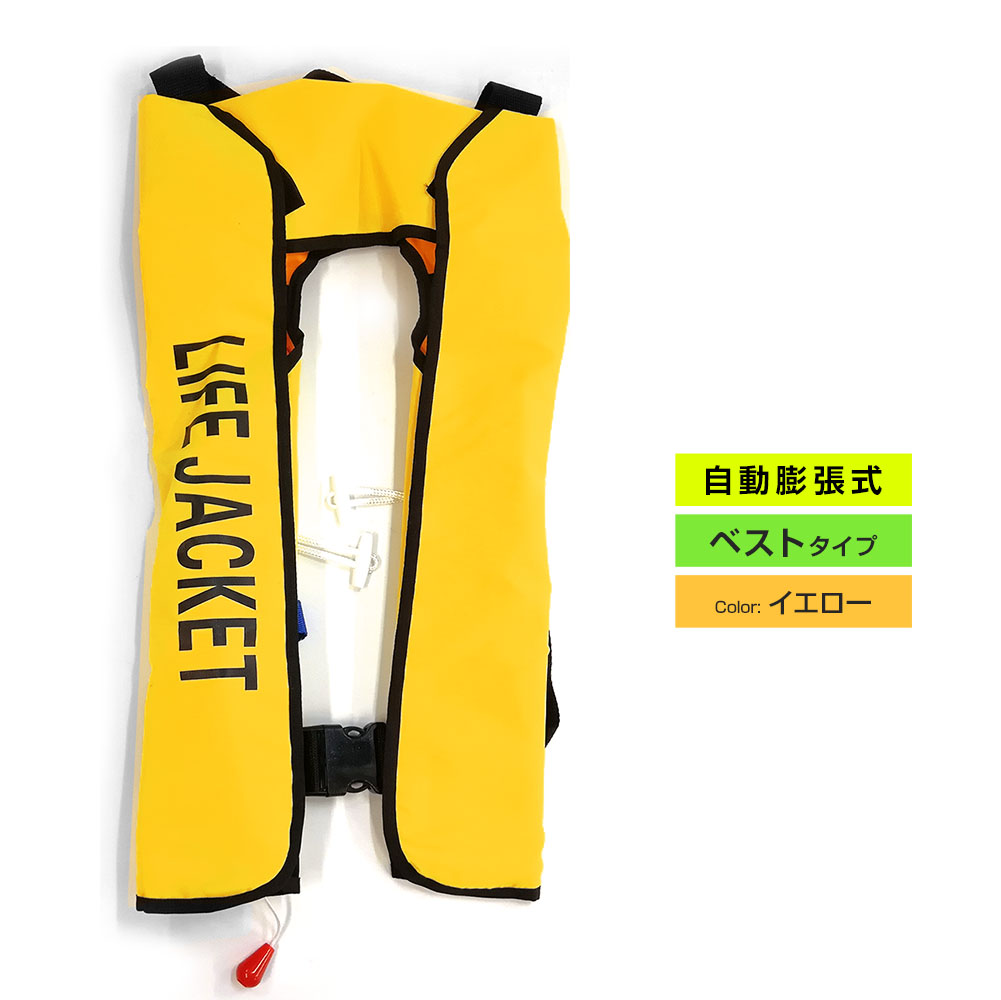 ライフジャケット 自動膨張式 首タイプ 首 ベスト型 ベスト イエロー 黄色 海 川 ボート カヤック 釣り 救命胴衣 男女兼用 大人用