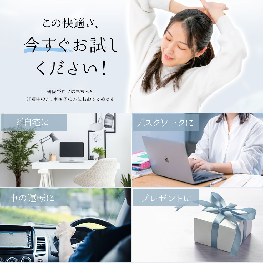 普段の運転、妊婦さんの負担軽減、スポーツ観戦やライブでの腰の負担軽減など、様々なシーンで活躍してくれる万能アイテムです。