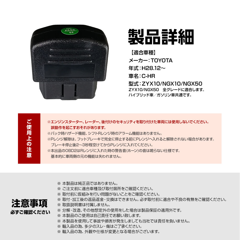 C-HR CHR ZYX10 NGX50 全グレード 車速感応 OBD2 OBDII オート ドアロック Pレンジ解除 自動 ロック 解除 ハイブリッド車/ガソリン車共通