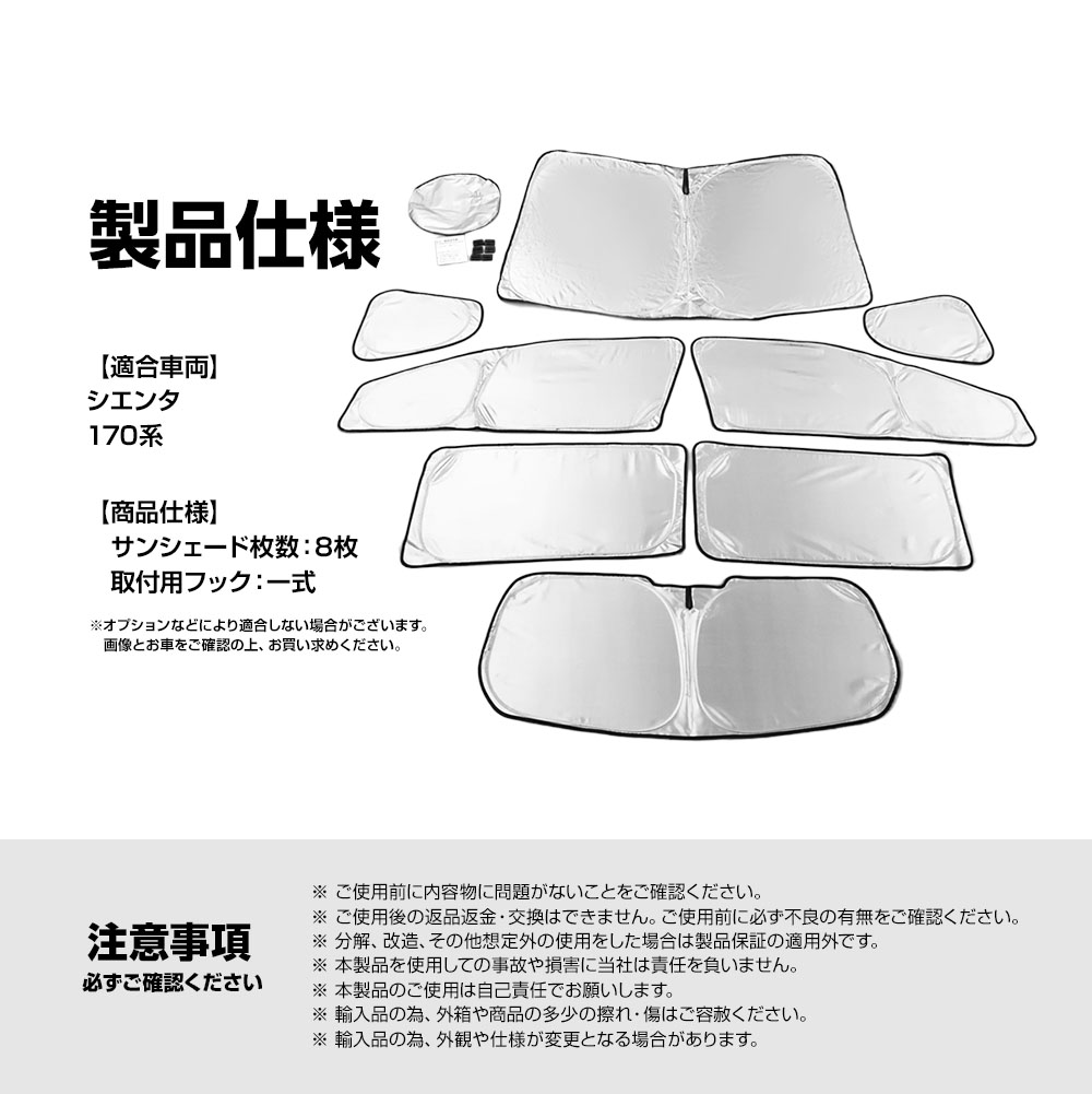 クイックサンシェード ワンタッチ サンシェード シエンタ 170 マルチサンシェード 8枚set カーテン 遮光 日除け 車中泊 キャンプ 保温